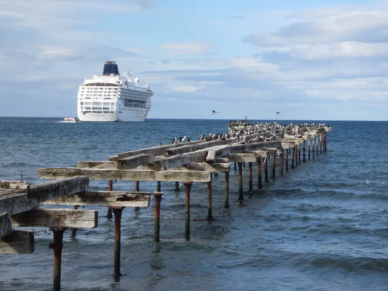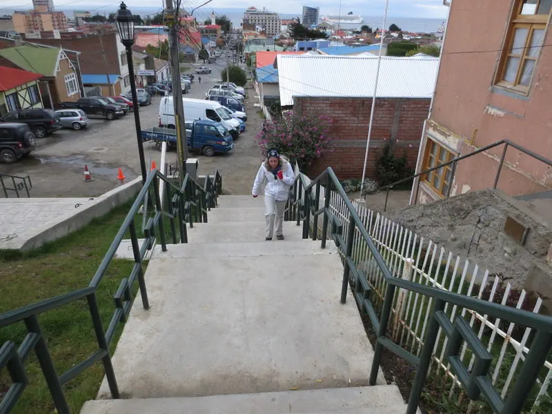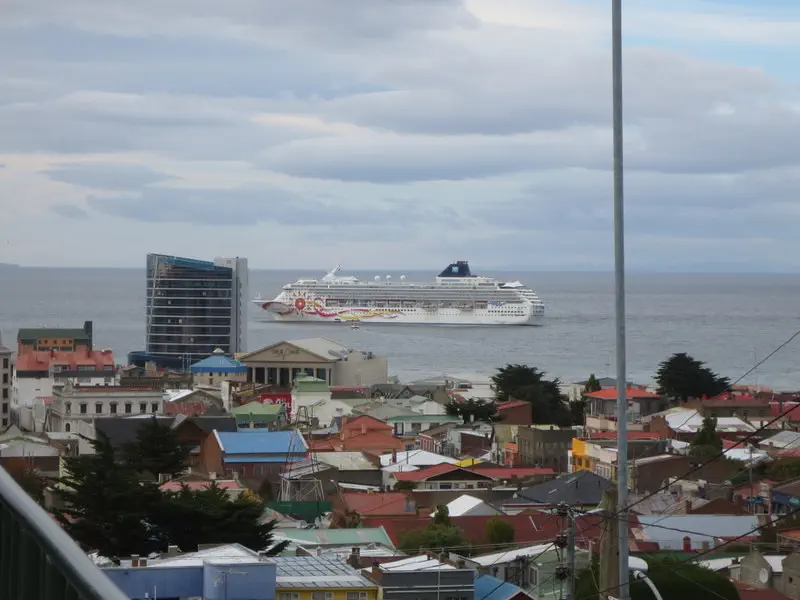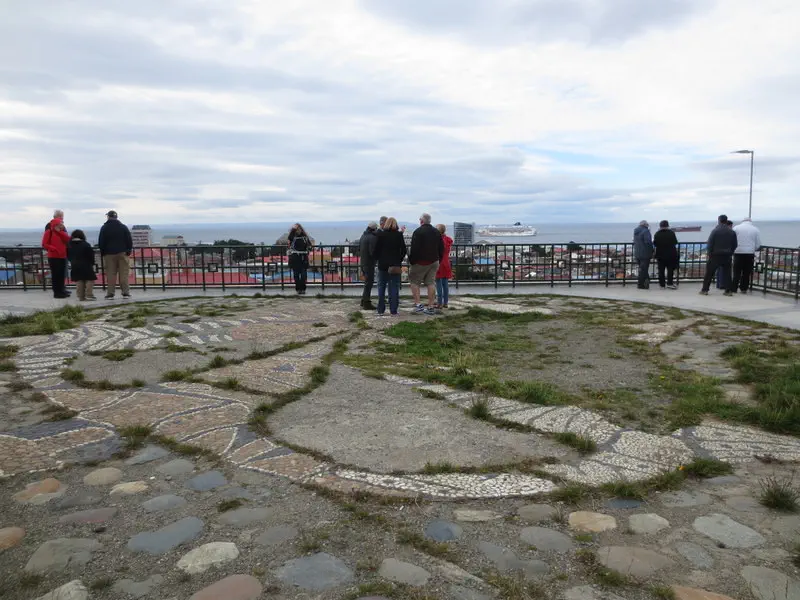 I learned Patagonia means big foot. I read if the ship docks; then a taxi is required to get to town. We tendered, which was right in town. It was not raining with some sun; it was chilly and windy (we were definitely far south now). We walked up the hill for the view.