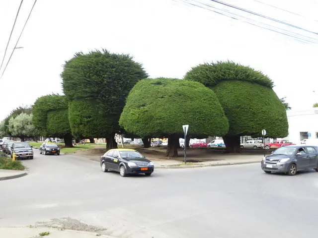 These trees had weird "haircuts". I'm not sure if they could not reach any more, so they just stopped. Some sea lion fountains; they were not on and did not look used lately.