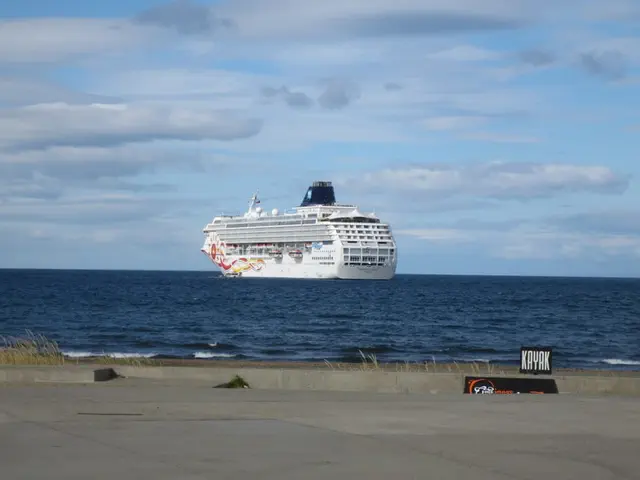 Made it. Art that is a bit overgrown. Great view of the water and ship.