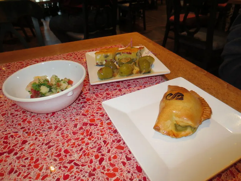 For dinner, we went to Las Rablas, the Spanish bar with complimentary tapas. Husband's food on the left. My plates. I liked the cream cheese topped ones the best; the others were okay.