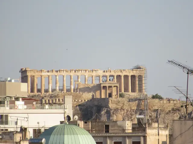 It looked like hotels in the area noted having added sound reduction for noisy city streets. We were in more of a residential area, but we liked it. We stopped at a more resident-geared grocery store several times for room snacks, breakfast, ice cream, and water (20p for a liter versus in the US where bottled water is the same price as soda). After getting sick from different stuff in the water in Italy, I'm big on not drinking the local water in foreign countries. We also had a big gyro plate to share at a sit down restaurant near the hotel. It came with 4+ pitas, chicken and pork, french fries (they are eaten in the gyros in Greece), tzatziki, another more mayo sauce, tomatoes, onions, and lettuce. The hotel also had a very interesting elevator; the door that you had to swing open with doorknob. It was very small, but good for moving luggage up and down, which I rode up with it.