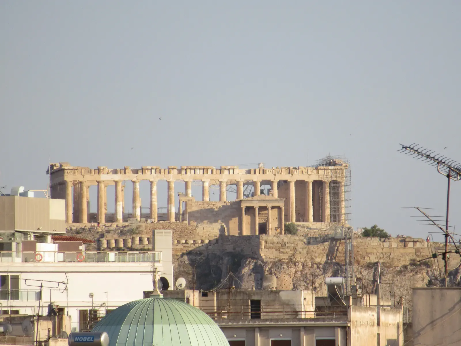 The hotel was good. Everyone at the front desk was friendly (we asked about a pharmacy for a cruise covid test and got two recommendations). Our flight arrived at 11:30 am and about an hour ride into to Athen, so the 2pm check in was perfect. They had the sleeper sofa open and ready for kids. Though we had to add our top sheets, they were folded into boats when we arrived. Maybe not everyone uses them. We were on the top floor, and it was quiet. We had two balconies that we could see the Acropolis in the distance.