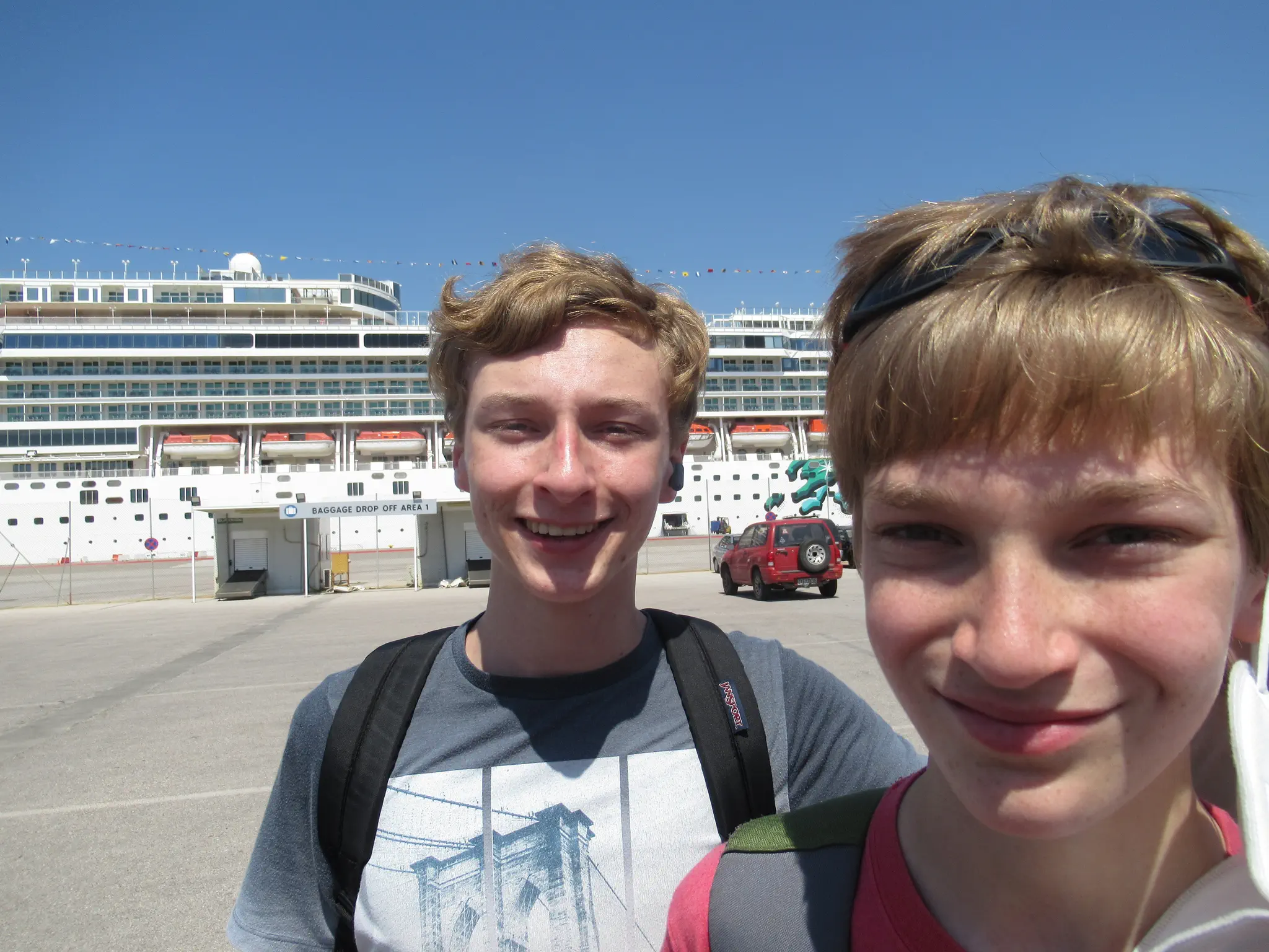 We caught the bus and finished walking to the port. We read about a shuttle between the main port terminal to ours at B (furthest away), but Travis got us off the bus closer to ours.