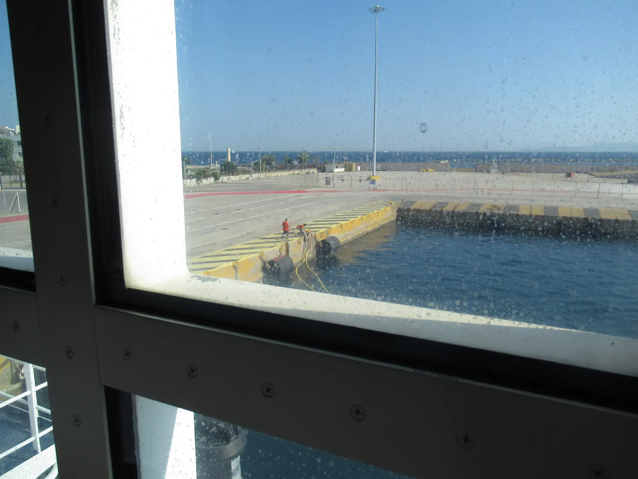 We bought new Metro tickets and took the Metro from Omonia (Ομόνοια) on the M1 to Piraeus. Then we walked to bus stop to catch bus 831, where we could use the same Metro ticket. Travis researched the bus options extensively the night before. There were a couple other buses that came to the same stop and went to the port; however, this was the first that came by and stopped. Our youngest found a 5 Euro bill and was excited. We were asking if it was others around us, but with no owner, he was excited to get to buy a souvenir later in the trip.
