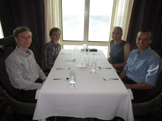 Yay, then we walked right on, and our cruise vacation begins! As soon as getting on, they sent us to our muster station to complete our muster process. Cruise lines have greatly improved the muster process, but they cannot get everyone to go -- others trying to ruin the improvement for all of us. So, they were catching people on their way in and sending them right away. Ours was the Grand Pacifica/aft main dining room (MDR). They scanned all our cards, and we were done + a long safety announcement later about all the safety procedures and the to go to your muster station horns.