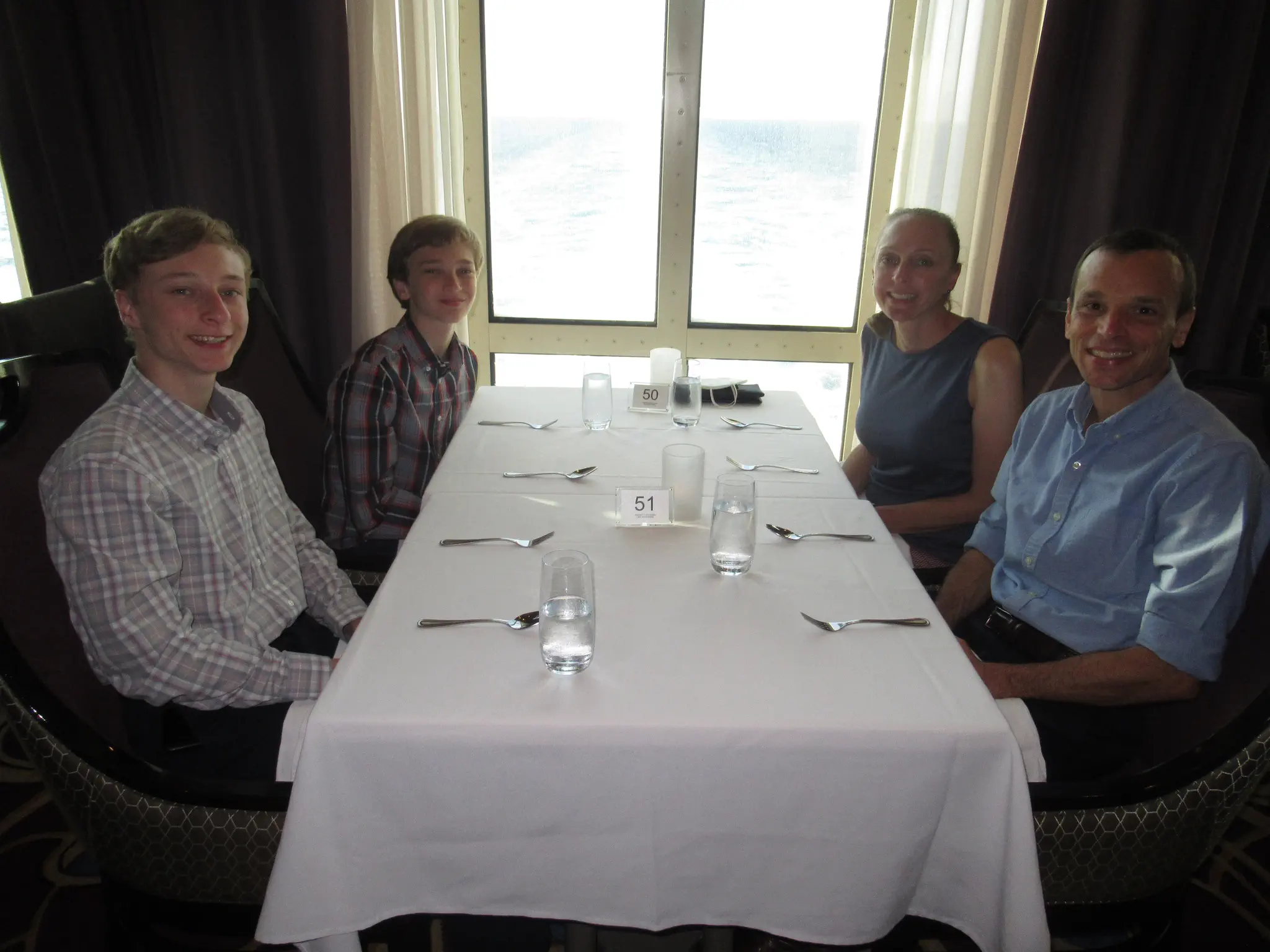 We headed to our room next, while the kids were guessing that we were on deck 8 and telling them that we were on 10 instead. The window was closed with the curtain to keep the cool in, so they did not even notice the surprise, and I had to point it out. Our luggage had already arrived too? We unpacked, went to explore the ship, and to the buffet to let Travis get some Indian food and dessert for all (though the kids already had one at O'Sheehan's).
