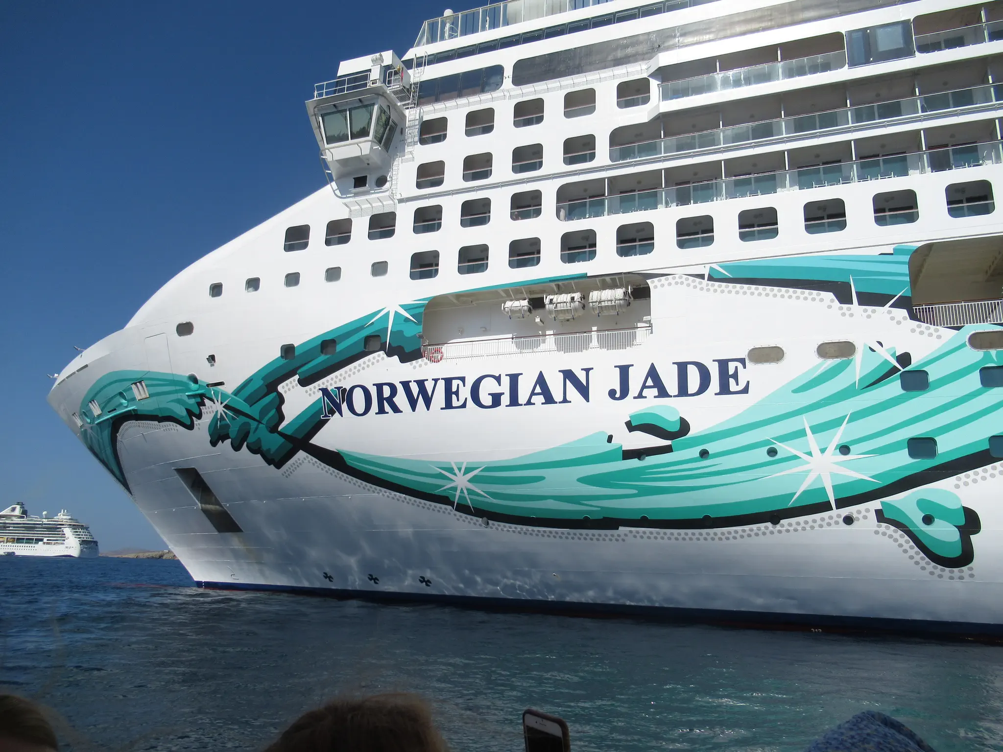 This was our busiest port, with at least 5 ships, in port this day, and the crowds showed it! A view of some of our friends; there was the new RCL Odyssey of the Sea, another RCL, and our sister, the NCL Gem -- the NCL team were very careful to tender us back to the right NCL ship.