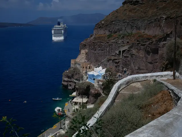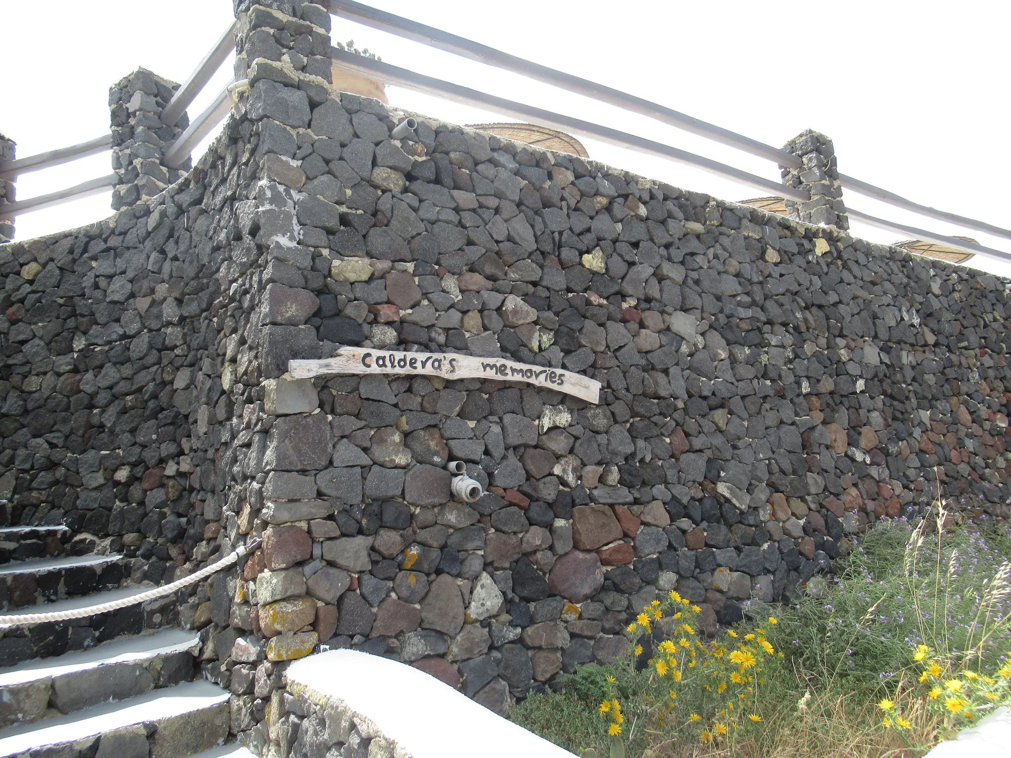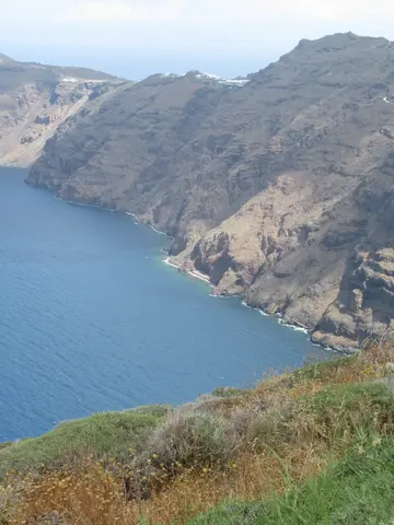 The comedy -- Santorini is one half of a caldera with other islands around the other side and the ocean filled in the middle.