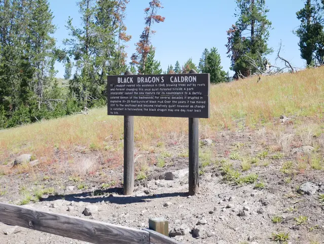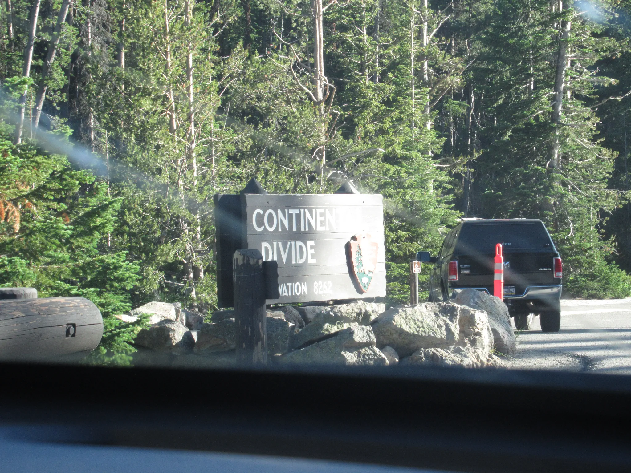 At this point, I went the wrong way to the Grand Canyon of Yellowstone, continuing toward Old Faithful, around the lower loop South and then East. So, we decided to focus on the West Thumb, Yellowstone Lake, Mud Volcano, and Hayden Valley. We decided to do the hikes in the Grand Canyon area early the next day. This way, after Old Faithful and before Grant Village, had road work with some stops for one-way traffic. While waiting, I tried to get a picture of one of the Continental Divide signs but did not do good.