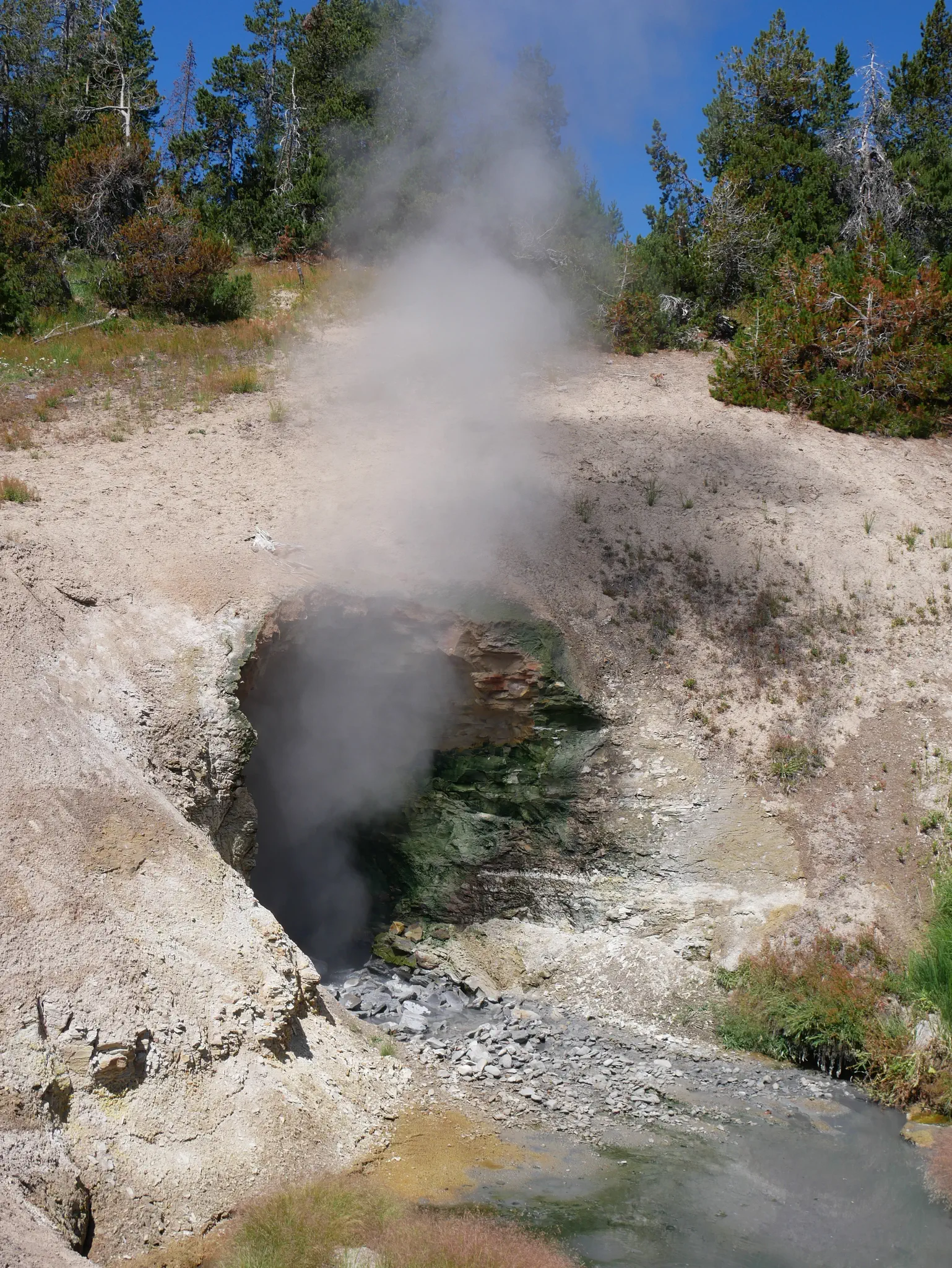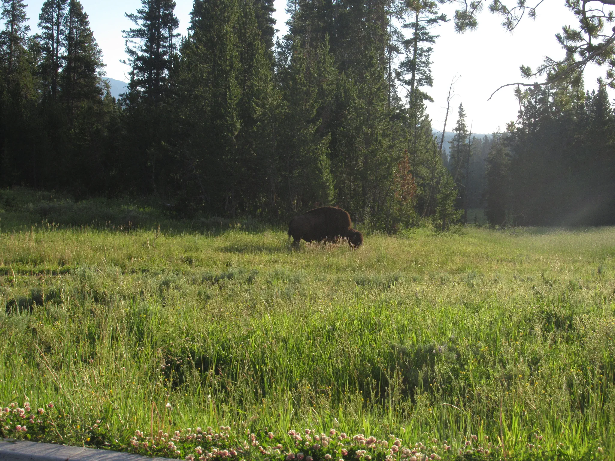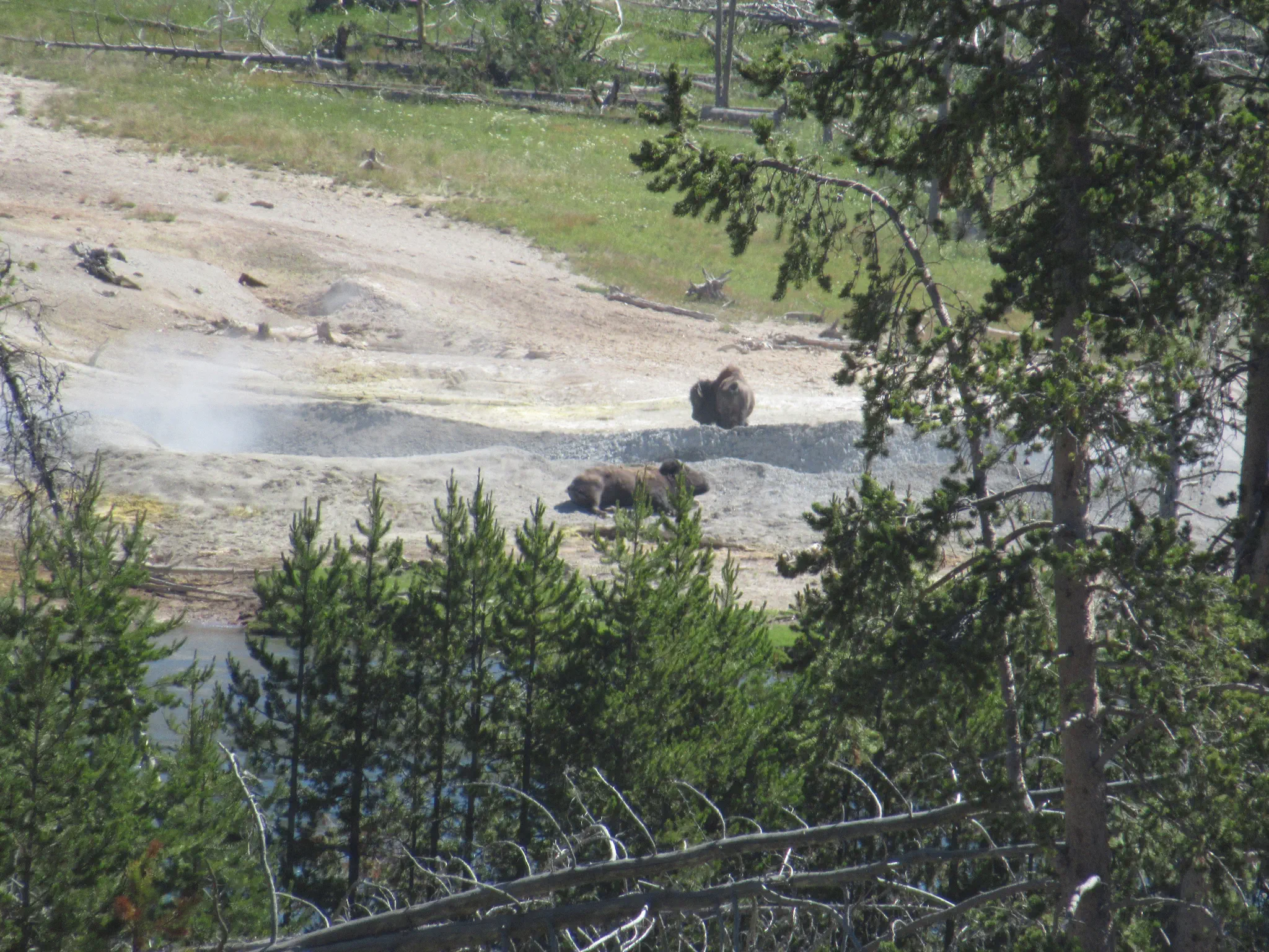 We made it up to Canyon Village, went to the visitor center, and had a snack that we packed (ice cream was a good price at a grocery store near Old Faithful, but all the food was very expensive at the grocery store here). Then we headed back West to Norris and then to Madison Jct. This road and direction (North side of upper loop) had lots of potholes to dodge. I guess the winters are very rough on the roads.