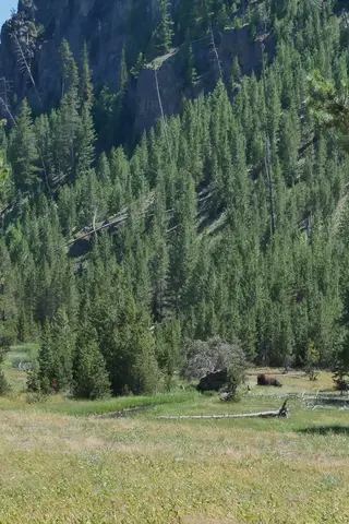 Bison at the Yellowstone river; we got a view from an overlook on the other side of the road.