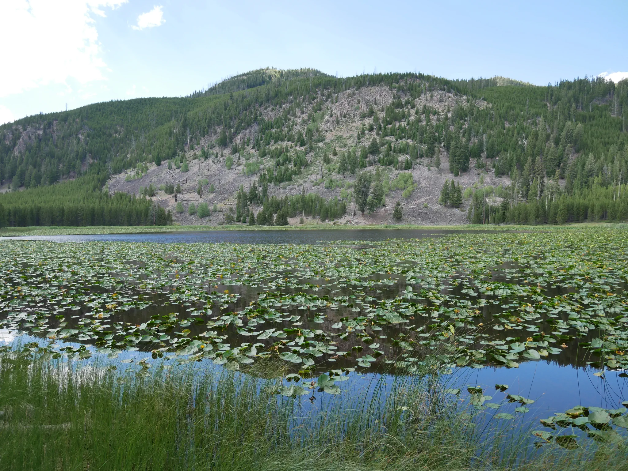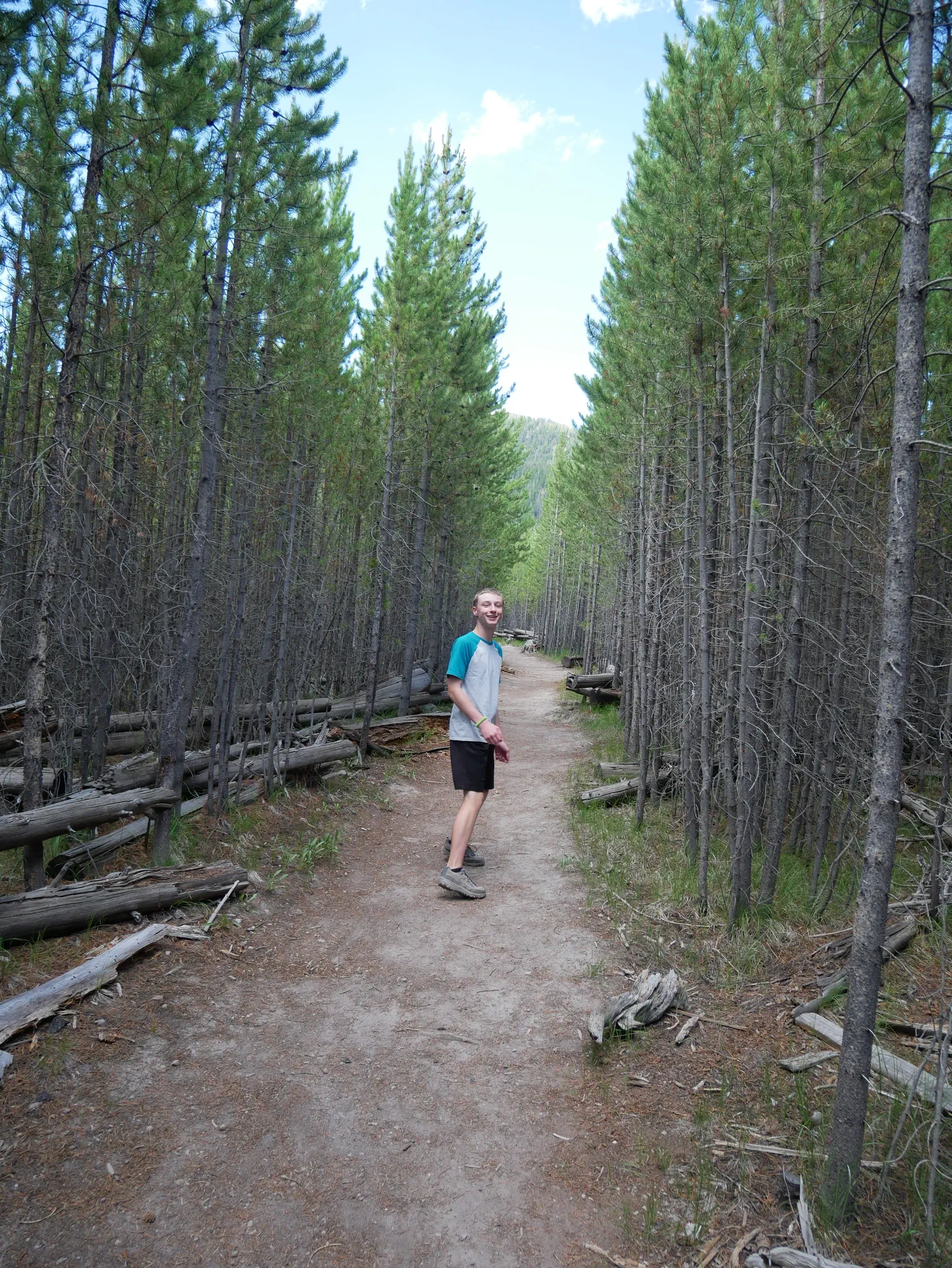 We did another hike in the evening to Harlequin Lake; this was west of our campsite toward West Yellowstone. There was a bear warning sign here, and with all these trees right by the trail, I was very nervous about bears. We never rented the bear spray or have a bell; I did the "hey, bear" and came up with some different songs. We did not see a bear.