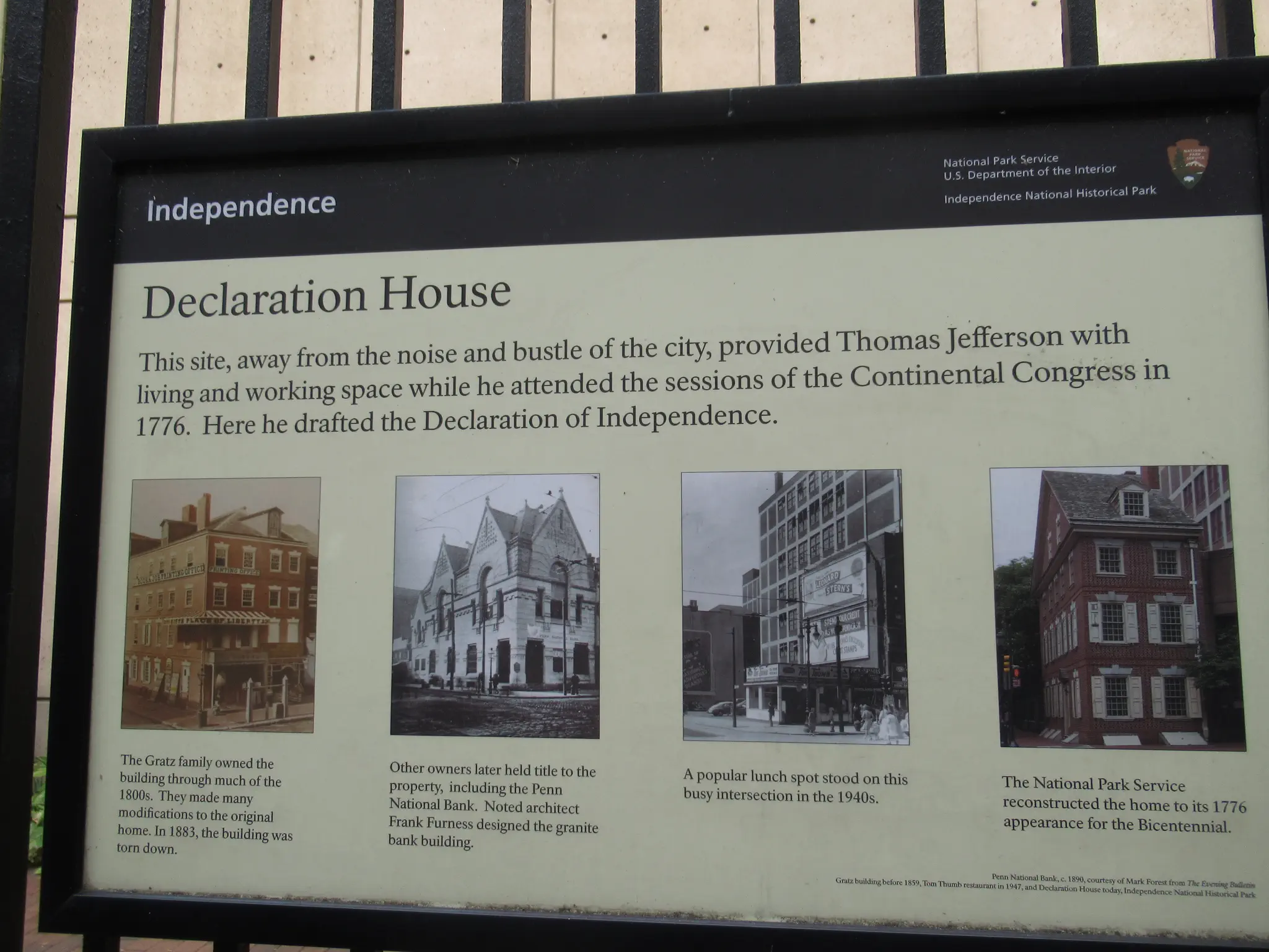 Declaration House where Thomas Jefferson wrote the Declaration of Independence. It was later edited, or as he said, mutilated.