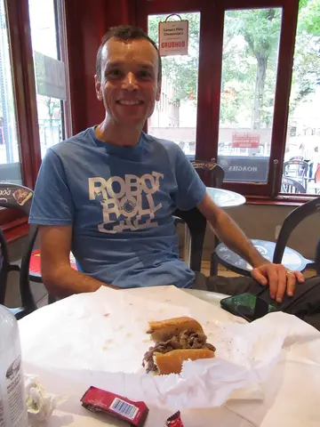 We walked to lunch. Our Philly cheesesteak sandwich from Campo's. We got provolone as the cheese, onions, and no peppers. It was delicious! Though not much left when I thought to get a picture.