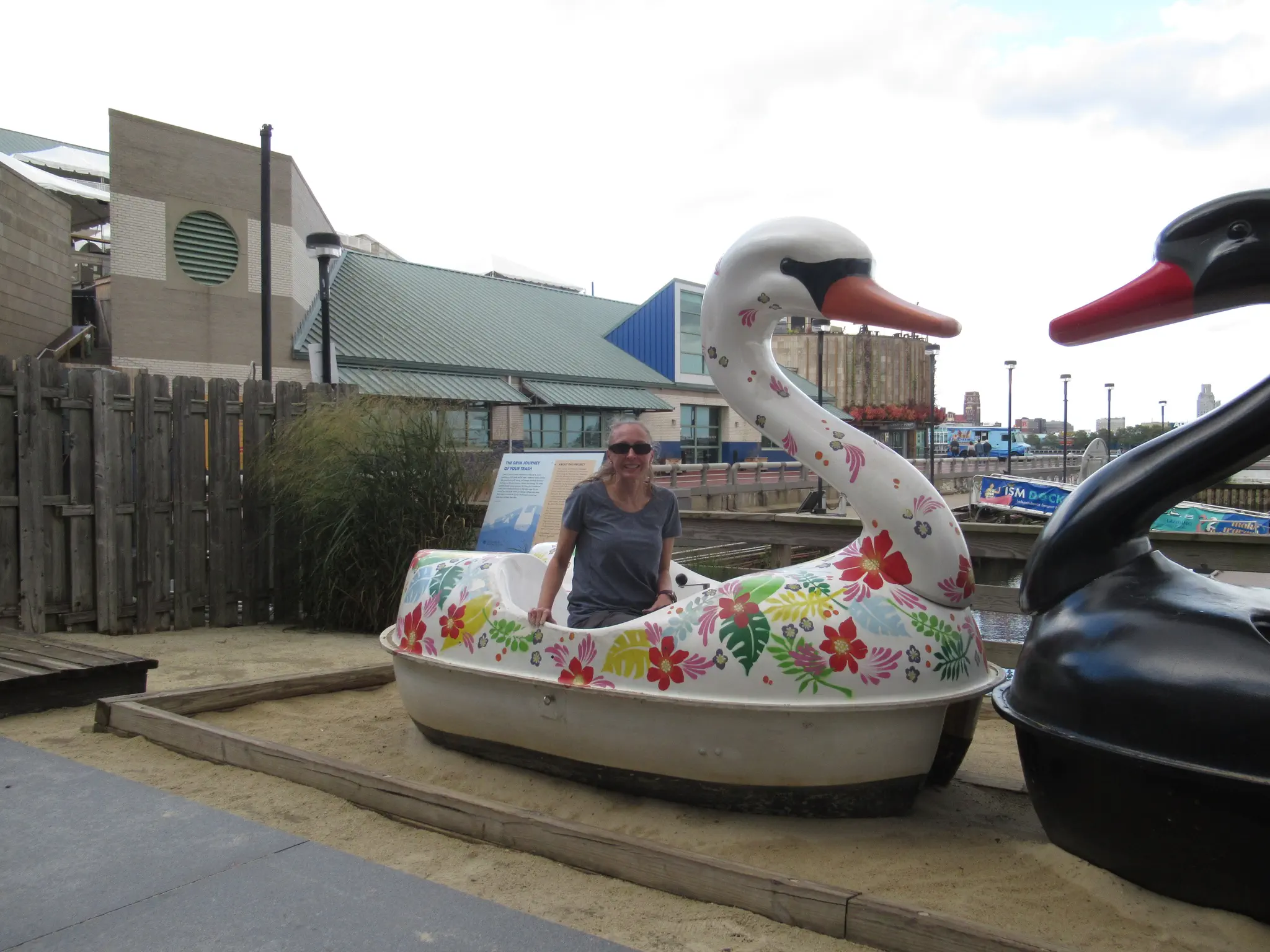 On the waterfront, the photo op swan paddle boats. These also looked run by the Seaport Museum but were not running this day.