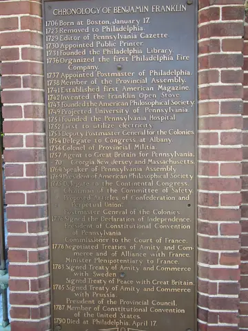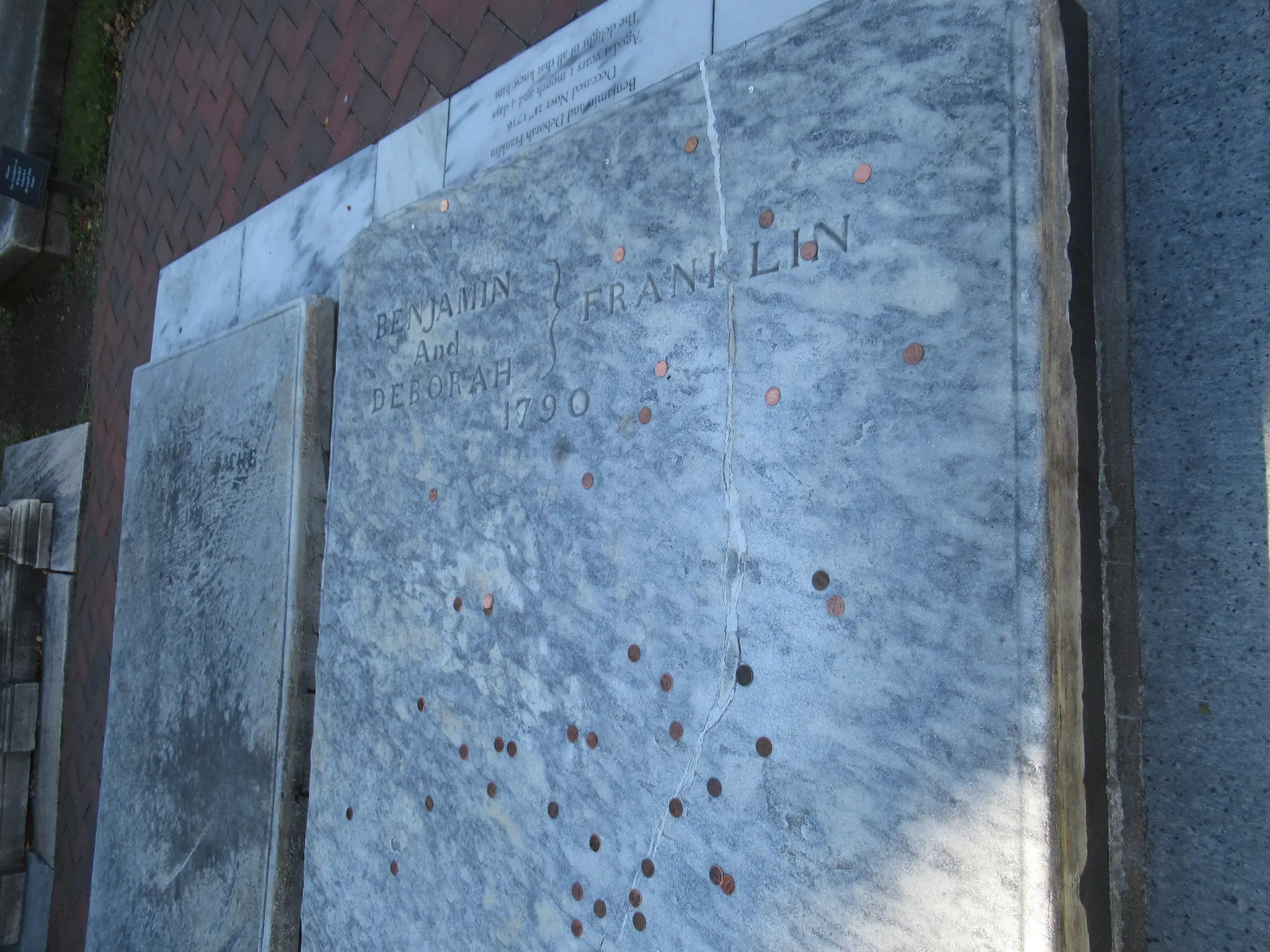 Benjamin Franklin and wife's gravestone, and some good information about his life.