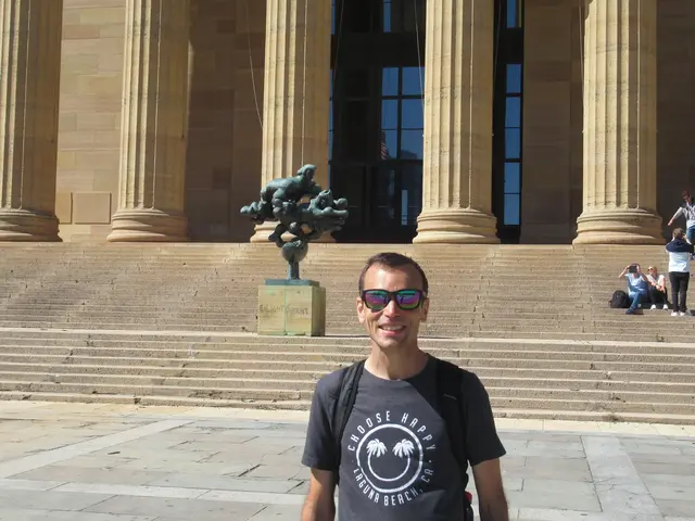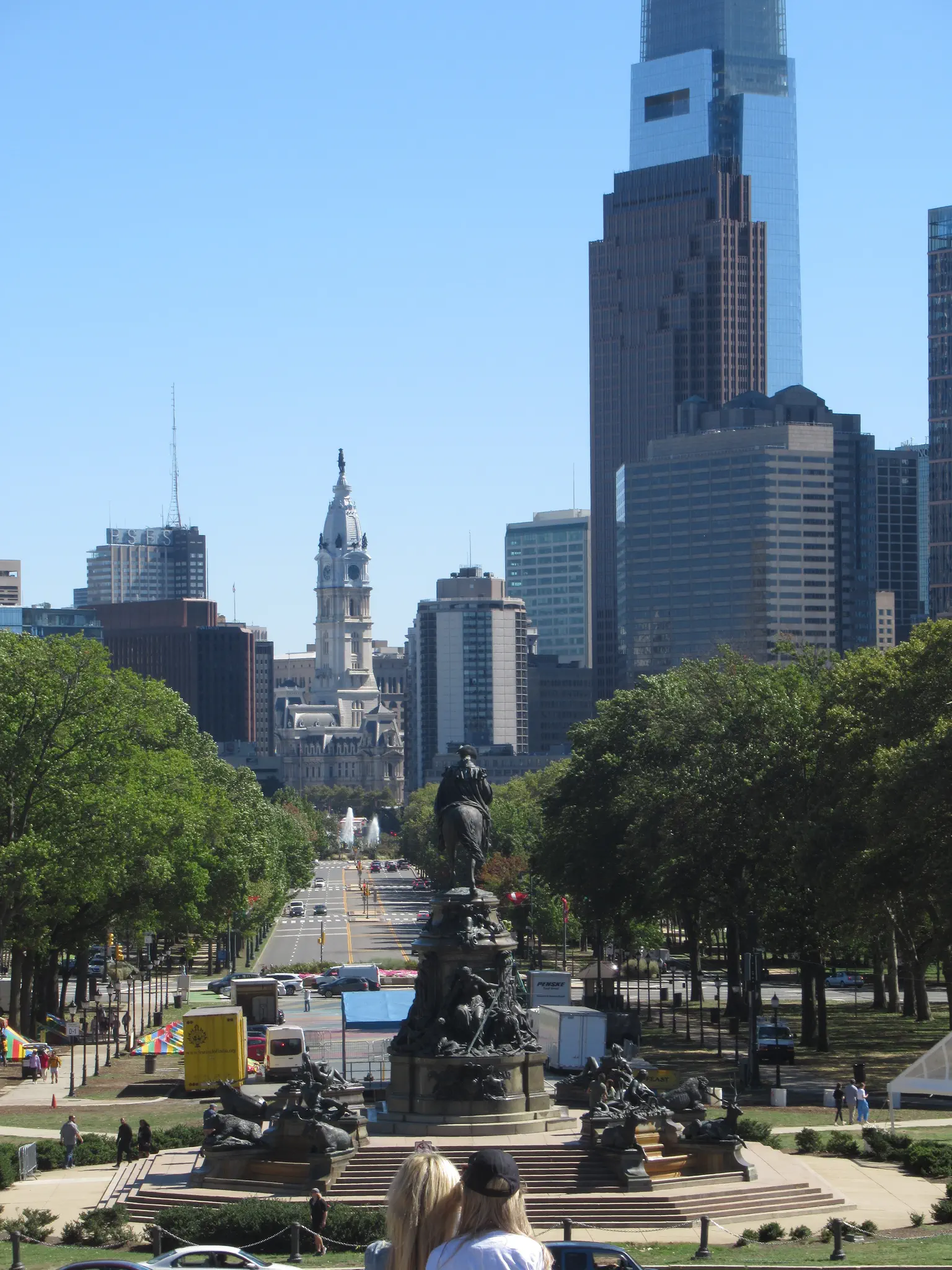 Philadelphia Museum of Art. We did not visit but looked at the outside with the stairs that Rocky exercised/training on. Before, we visited the Rocky statue; Travis managed to get a picture without anyone in it. There were lots of people by the Rocky statue talking/bothering to tourists, offering to take a picture (for tips), and selling shirts. It was too high pressure for me. The stairs were a more pleasant experience.