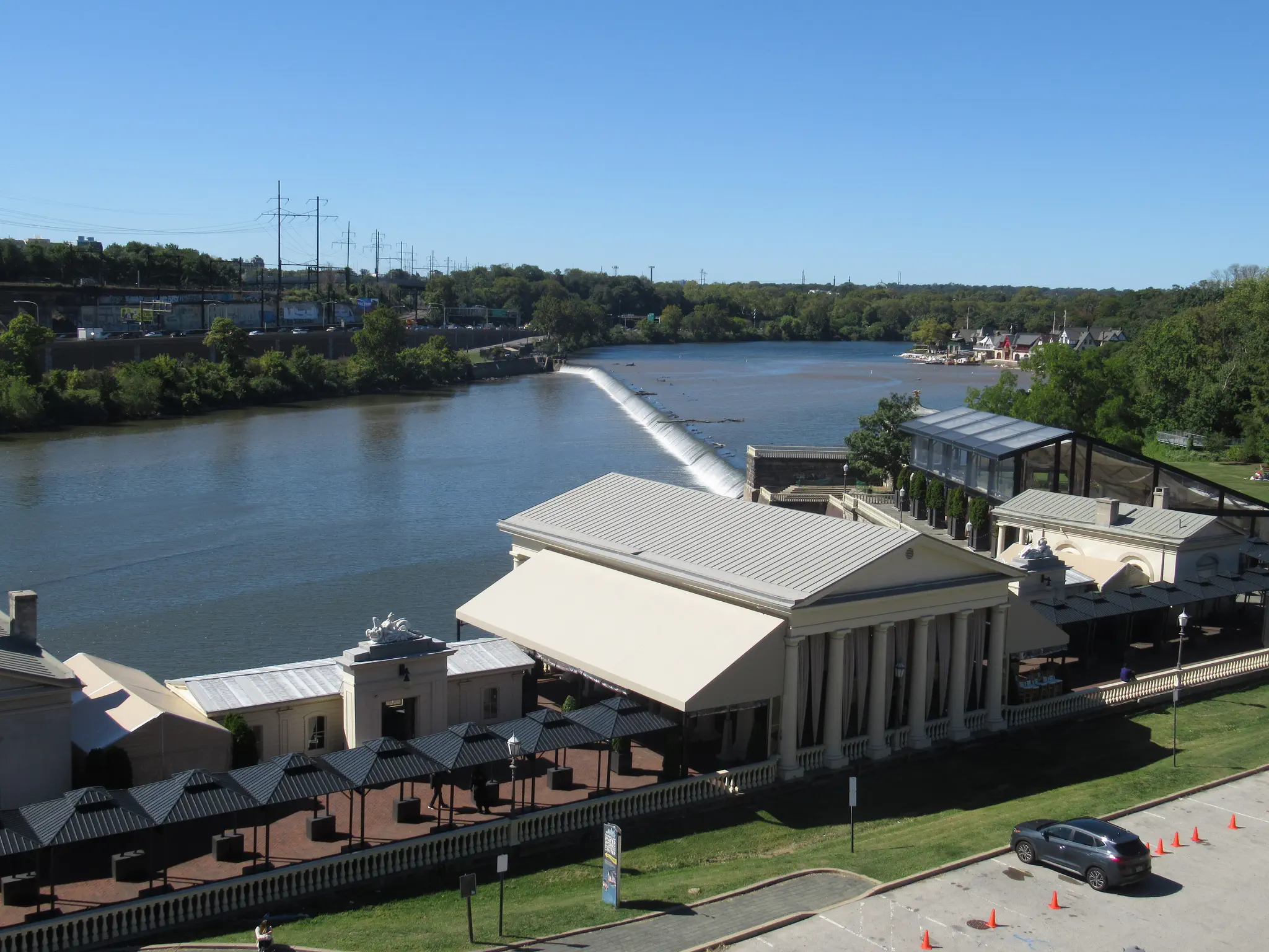 Behind the Museum we found the waterfront and Schuylkill River where the dam was.