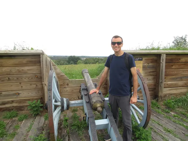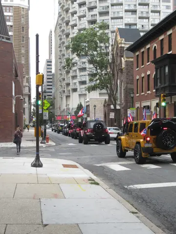 I thought the first Jeep with flags and loud and being obnoxious. Then we saw many, and they lined up for a parade, cool. We passed this walking to catch the bus to Valley Forge. Valley Forge was at the end of route; we are alone at the end.