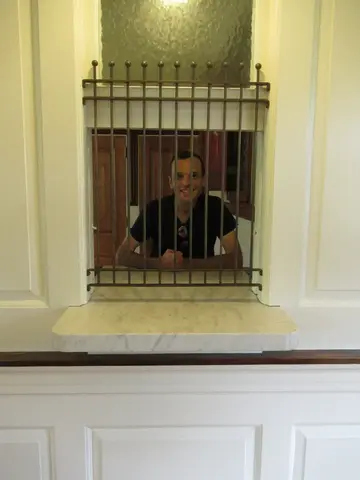 Next to Washington's house was the train depot with some displays. Travis working at the ticket agent.