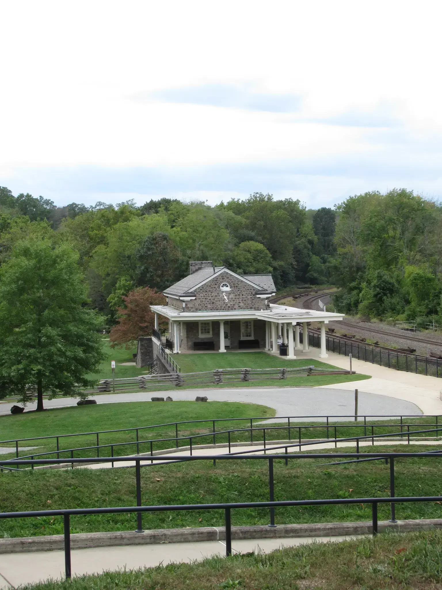 View of the train depot. A train did go back while we had a snack and waved at the Park Ranger. At the station, we found a lanternfly, which just looked like a cool bug with a bright orange/red wings. The Ranger noted it was a good one -- because it was dead; it took me a few seconds, but I finally got it. He explained their invasiveness, and how they were trying to keep them from getting to the area of Pennsylvania with grapevines since they are very destructive to the grapevines. He noted that they like a fast growth tree that had been brought in to line streets. They now put down poison around the tree, which does kill the lanternflies. Back in Philly, we saw more, and tried step on some to help out (so they were not all good ones to start until stepped on).