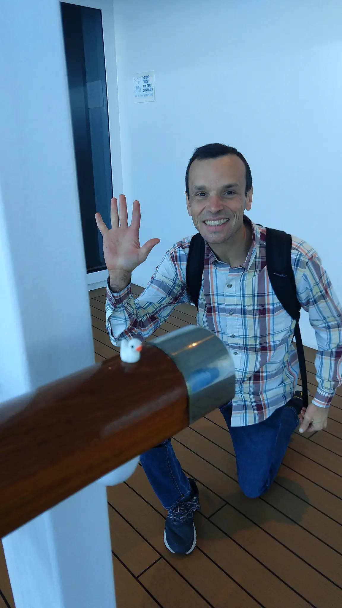 Found a cruise duck; I made Travis pose with it. We also found a tiny plastic cruise baby? One morning a little girl and Mom were looking for a duck in the buffet because the little girl really wanted to find one. When their led turned up dry, a crewmember passed with a cart with dishes and a duck. I mentioned to them, and the girl was excited. Hopefully, it was not too dirty, and they gave it a nice bath because that is a strange place for a duck.