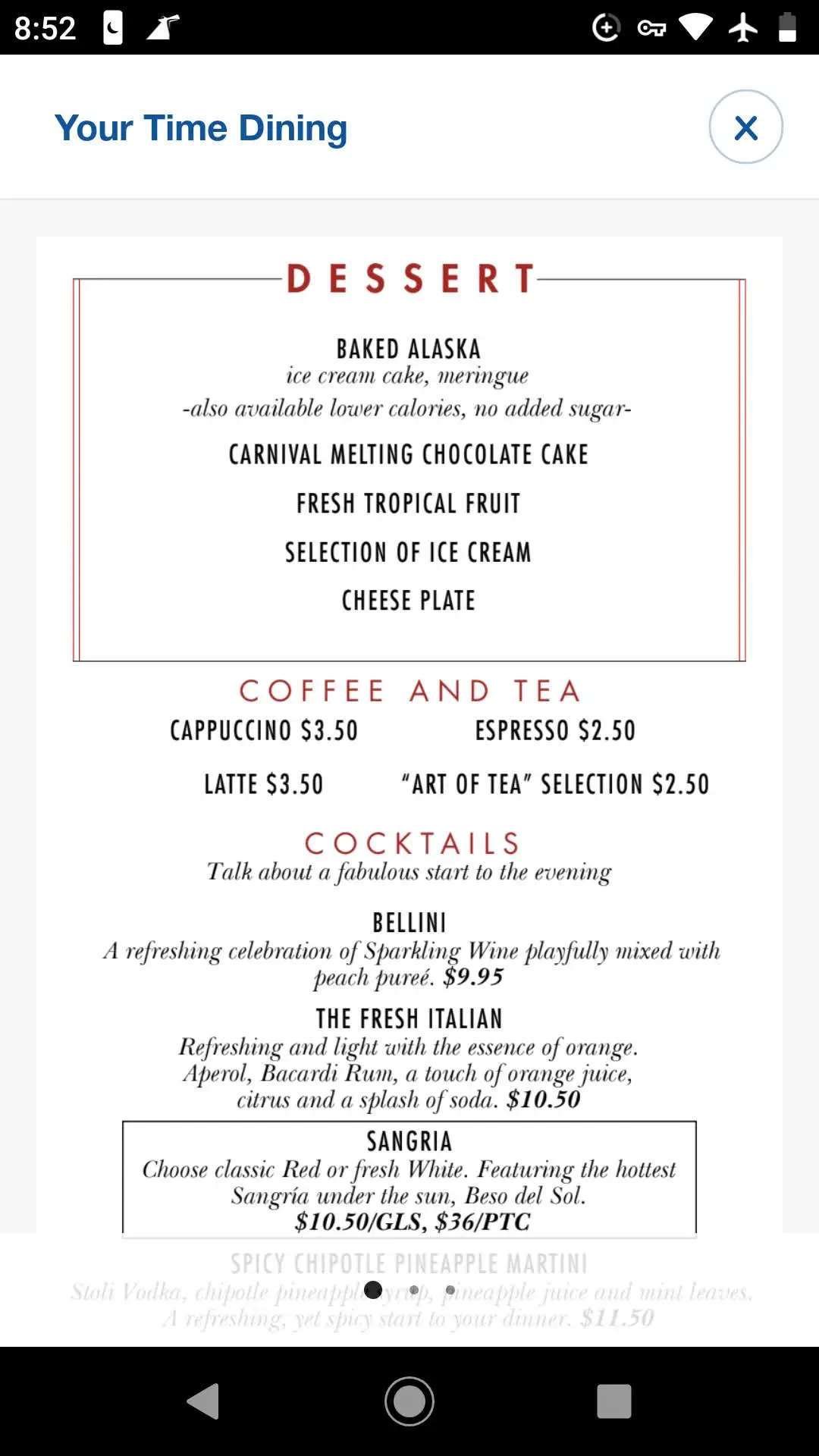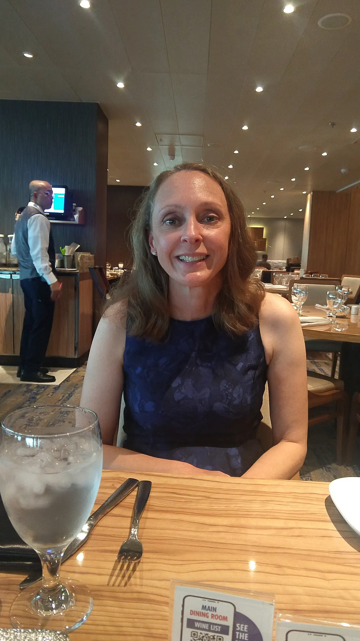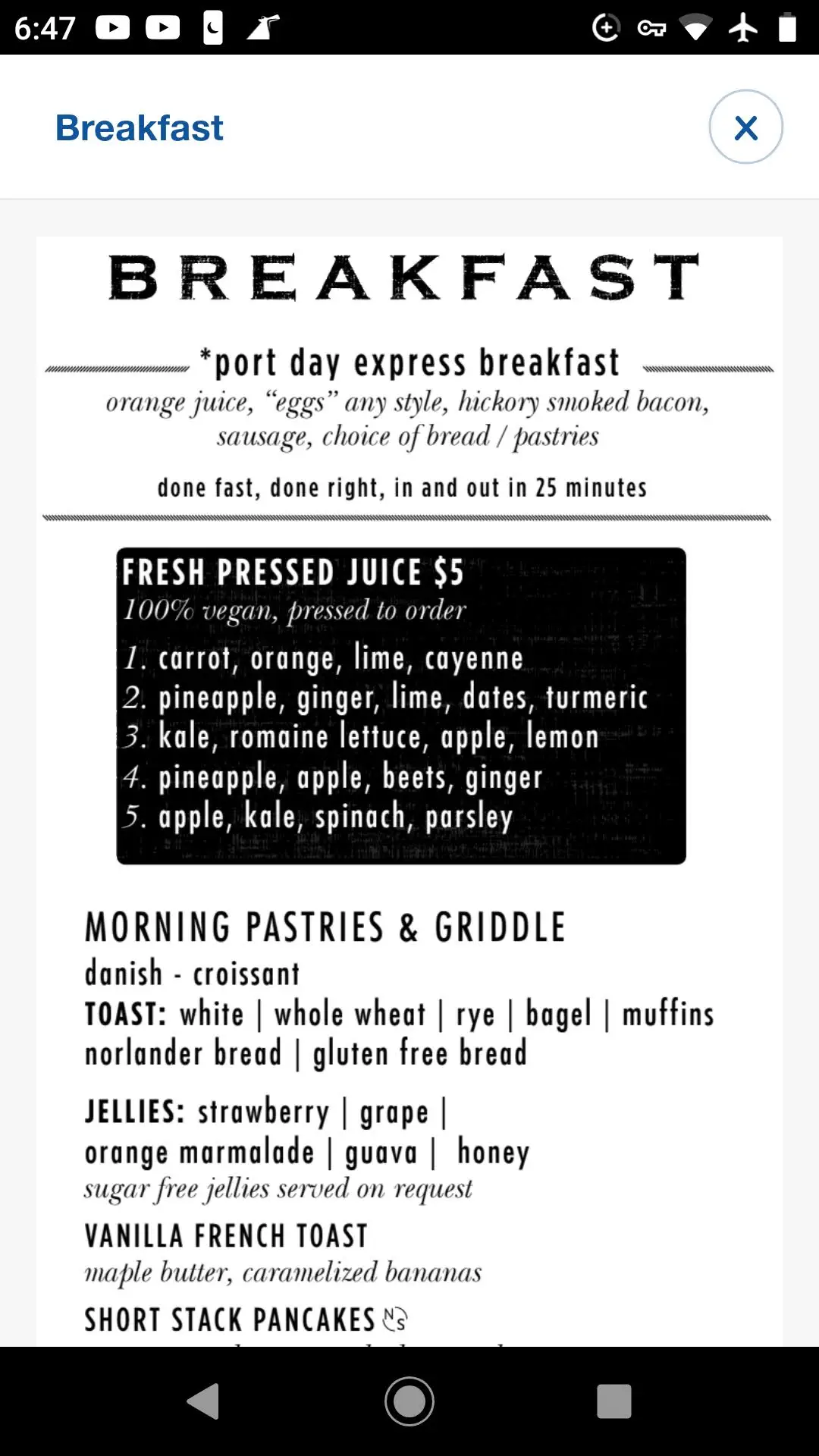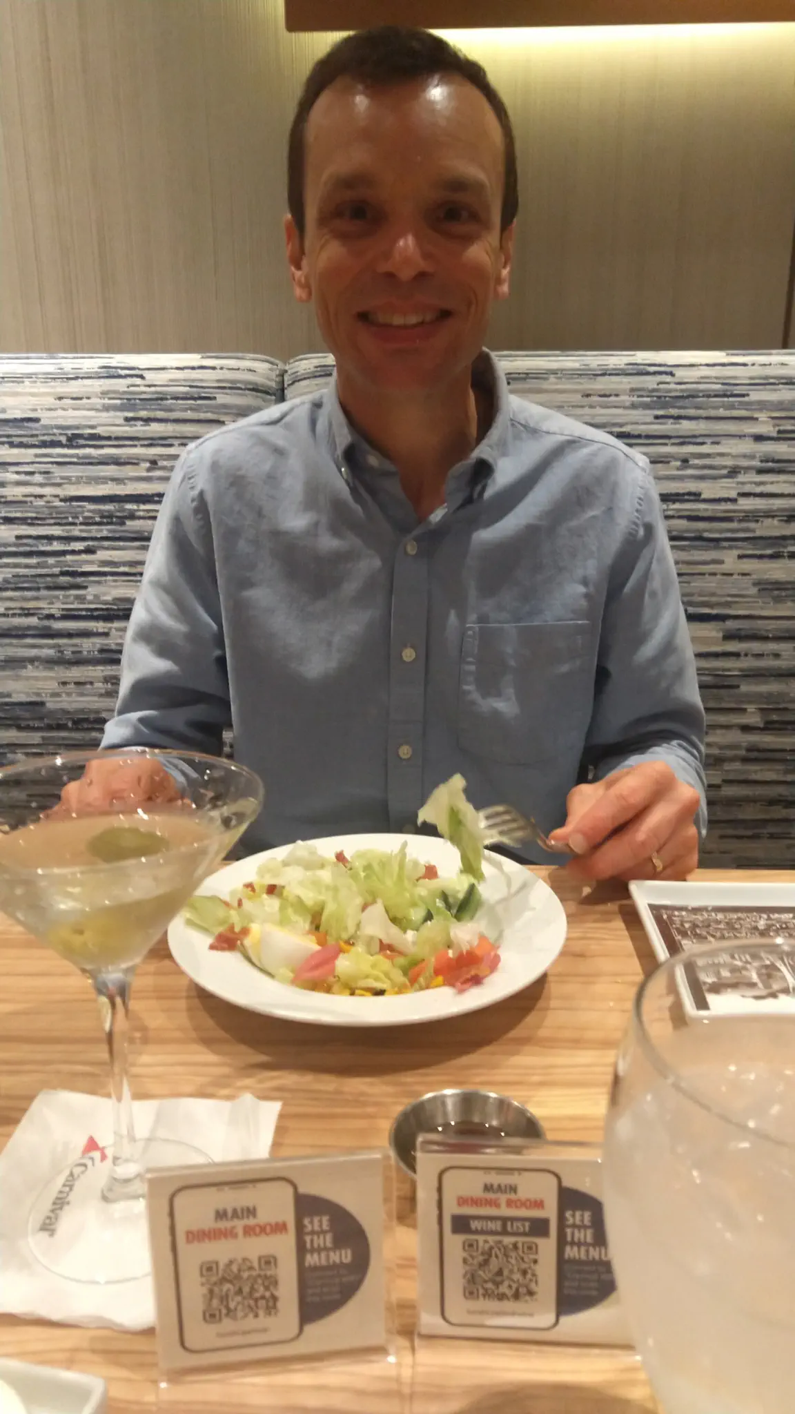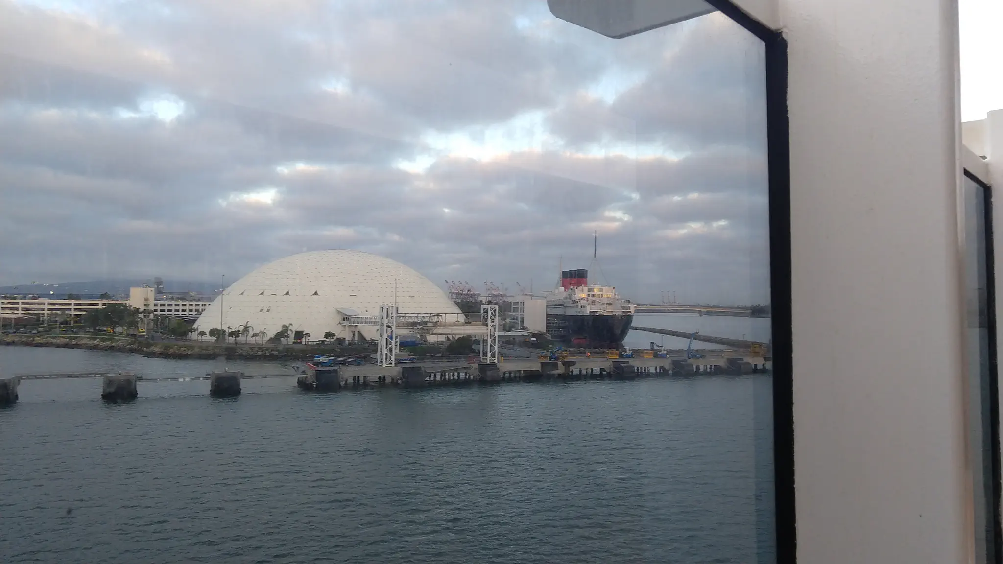 They did not push the fresh pressed juices this morning. We watched the approach into Long Beach from the dining room and went to the promenade to get another view later. We needed to leave the room by 8:30 am and the documentation noted that everyone had to be off by 10:45 am. We did carry your own bags, which they called by muster station numbers. We waited in the library, and time between muster station calls seemed pretty slow. Some was probably extra people, not really going during their muster station, and the cruise director announced to only come when called. Though we docked early, so we got off quicker. After getting off, customs was also pretty quick -- though the birth certificate line was much shorter than the passport line which had the facial recognition. We then got in the taxi line. It was expensive; Uber would have been cheaper. We had an early enough flight that I was not brave enough for public transportation.
