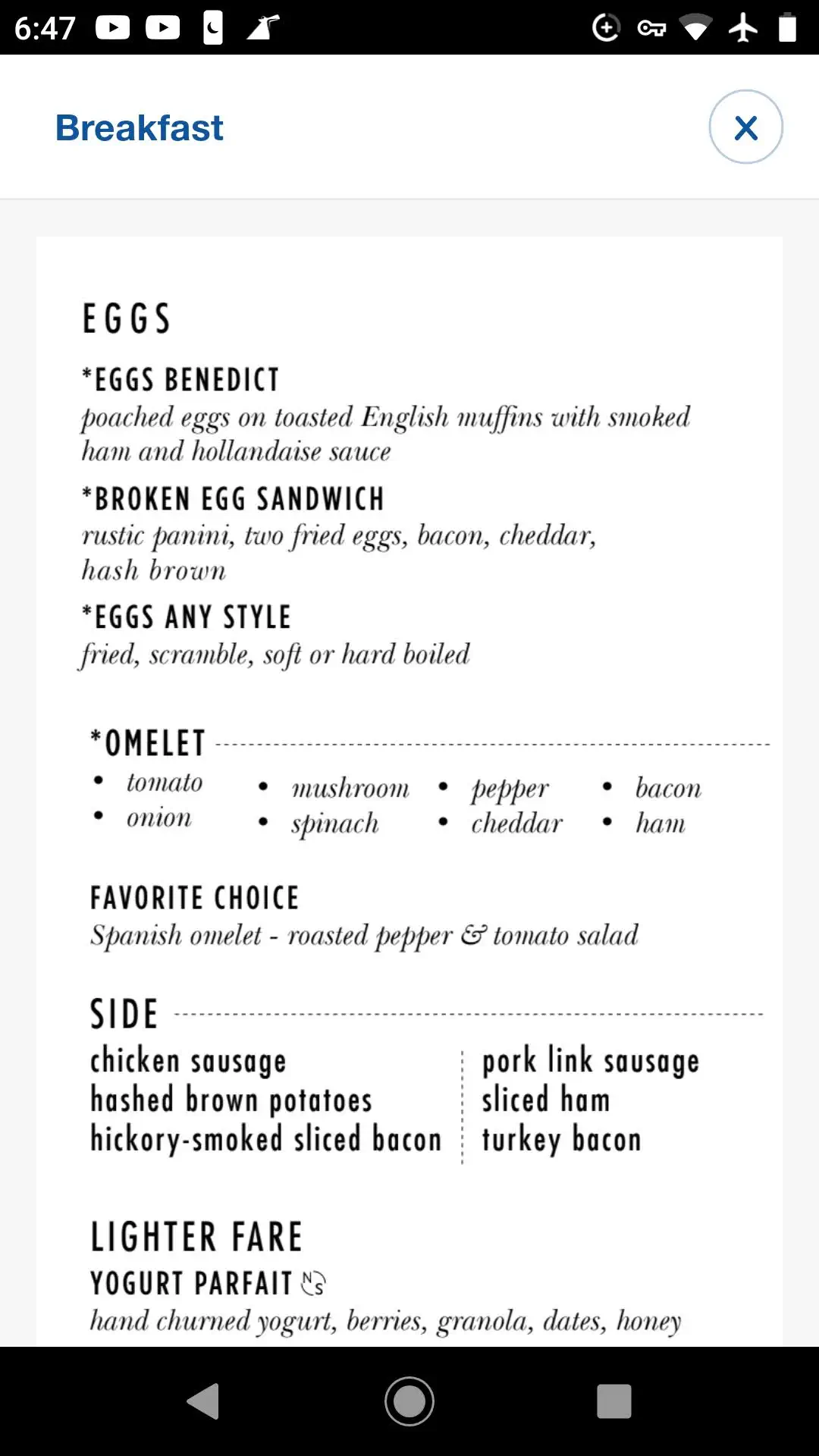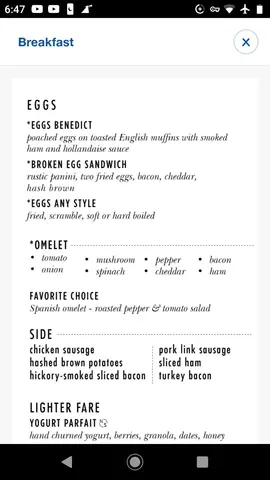 The last day, we got up early enough to have the MDR. I got the broken egg sandwich, and Travis the oatmeal. Lots of choices.