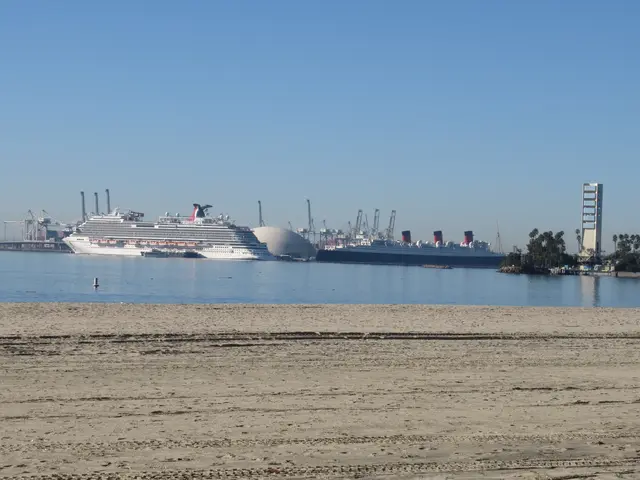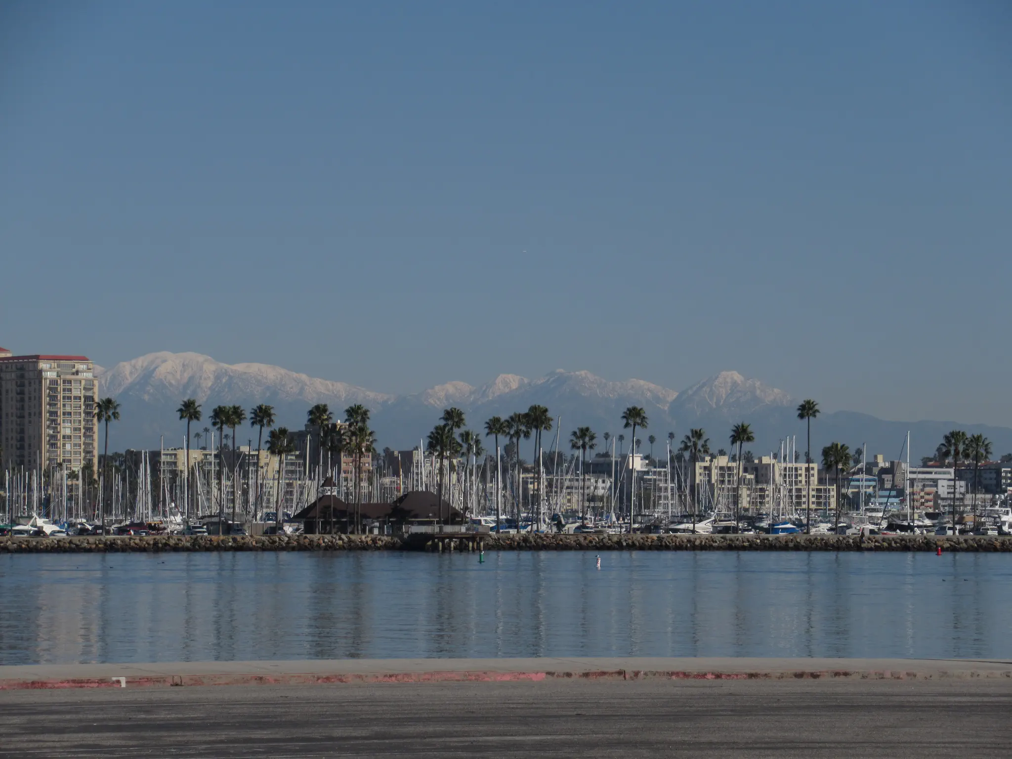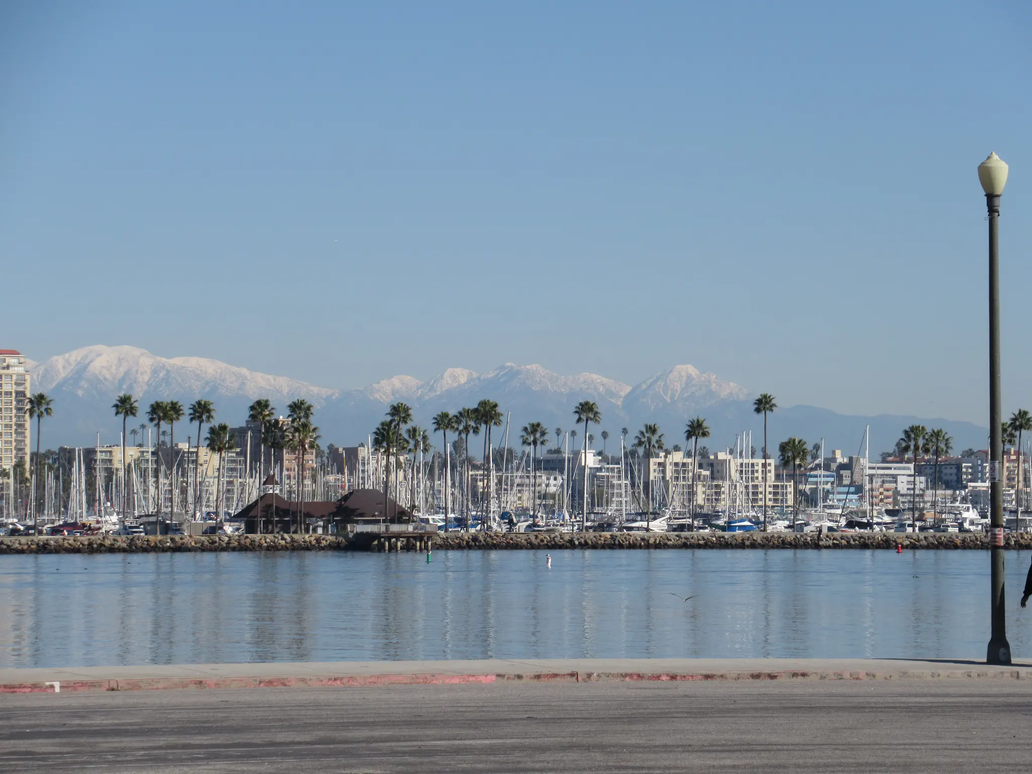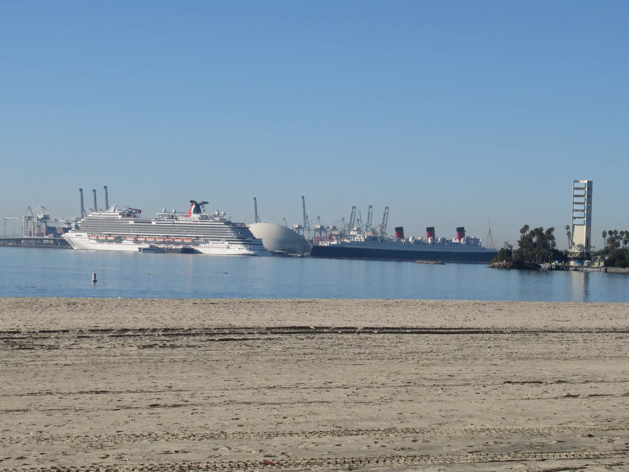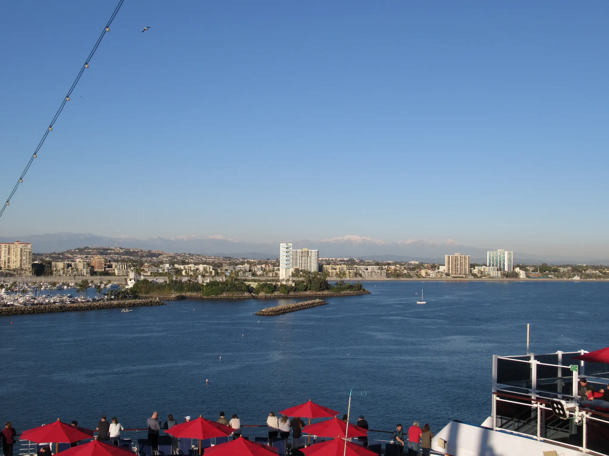 Travis found that Long Beach offered a free rides to the port on a bus called Passport. I read that ubers, etc. getting into the port had to go into the parking and get a ticket creating a long delay, so this was good. We went to the bus stop, they had space for our big suitcase/luggage racks, and we were the only ones on for the full ride. It worked great! It stopped at Harry Bridges Memorial Park near Queen Mary. We stopped by Queen Mary for a quick snack. I found mountains that looked great!