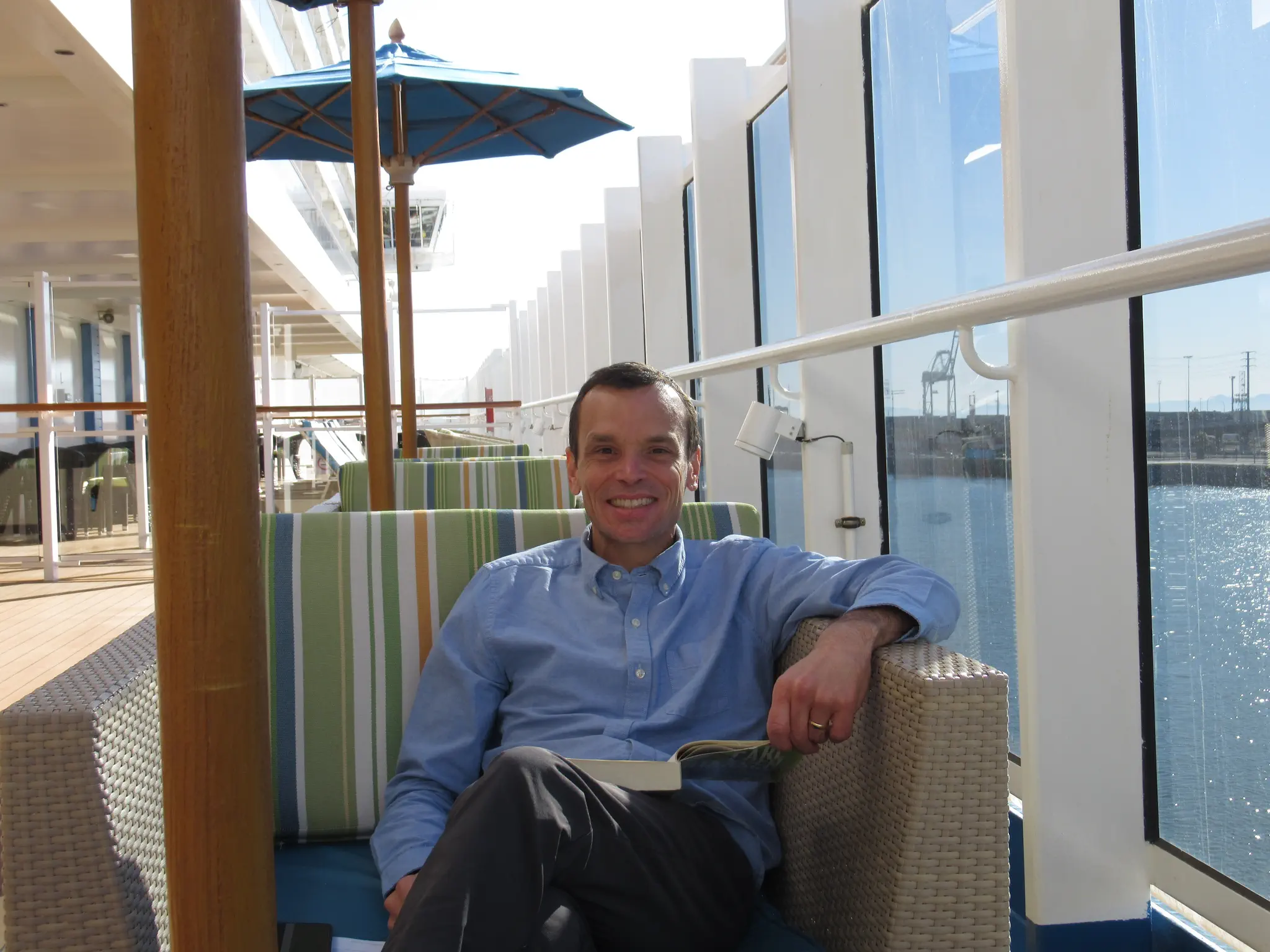 We did some ship exploration and did the rope course. I had done it on another ship, but it started out terrifying. Then either the obstacles got easier, or I got more comfortable because it was easier at the end. Still, going around once was enough for me; Travis went around twice and did it again later. The SkyRide had a 30 minute from here line, so we skipped it for today. We played a little putt-putt, but it was very crowded with kids. We could not believe how many kids were on the cruise! Our kids were in their second week back to school after winter break. During disembarkation, the Cruise Director, Marty, said there were 4,300 people to disembark; looking up the published capacity, I calculated that we were at 107% capacity. Eek, we only went one post-covid cruise with lower capacity, but I have heard such good things about not having a full ship.