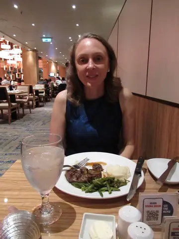 I do not have many pictures from the first Sea Day. We went to Sea Day brunch. Over the last several years, it has dropped in service and menu options. It was our weakest service this time too; all of the other service was great! I had the steak and eggs, which was good. I requested Travis have the skillet cake (a thick pancake make in a skillet).