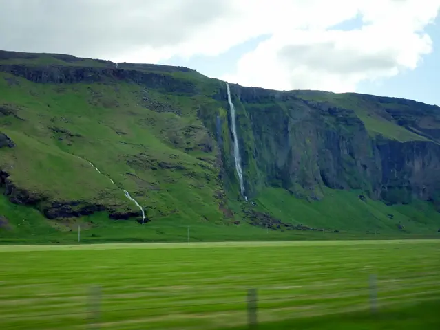 Our last stop was Seljalandsfoss. We walked behind it. It was super wet! So, we did not get any pictures from behind. There were a few other waterfalls in the same area and hiking past them.