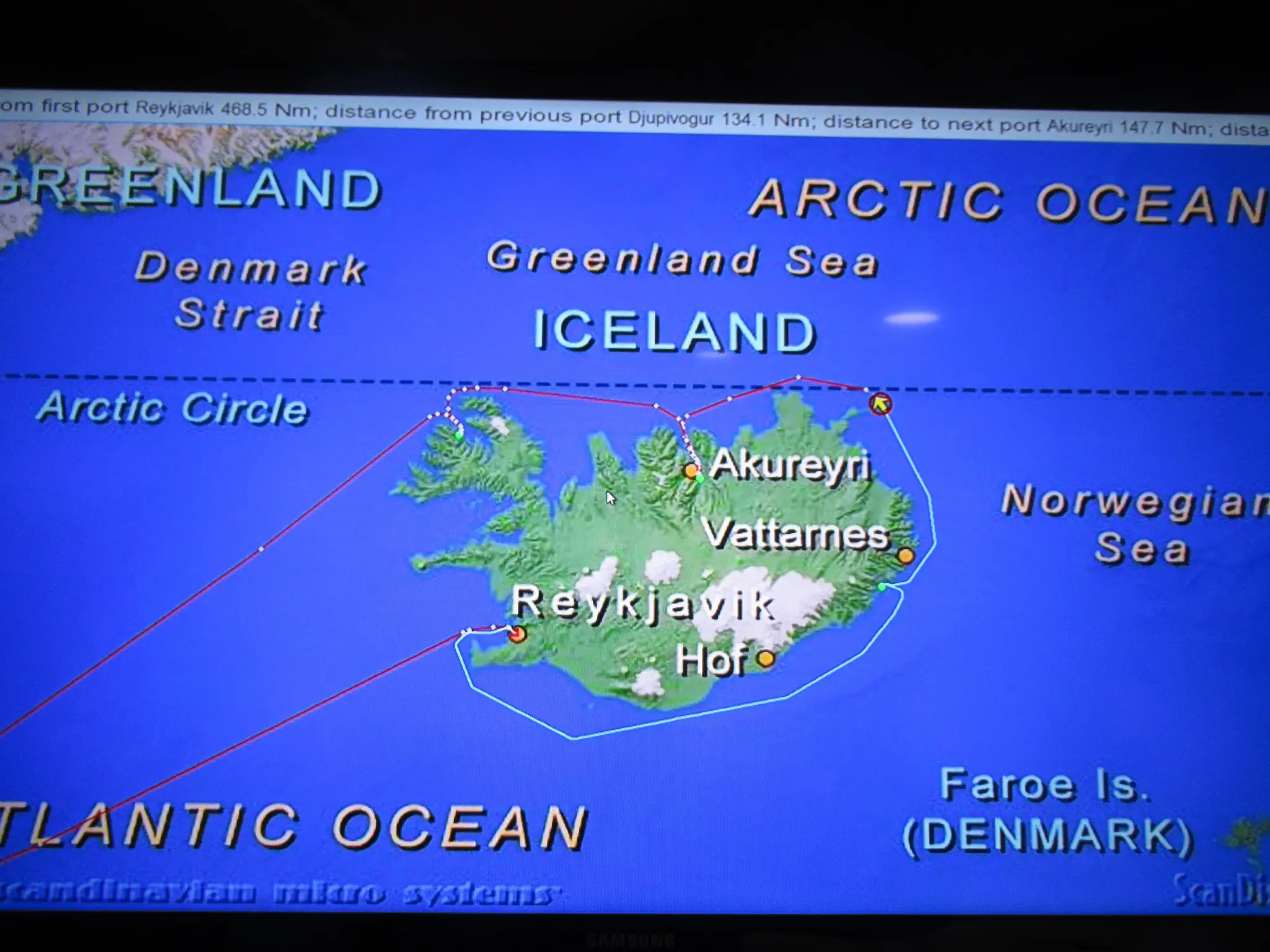 The acrobat show was scheduled today. I was excited and always enjoyed their show/talent, but then it was canceled. Disappointing! Hopefully, no one was injured. About to cross the Artic circle at bedtime, so we grabbed some pictures. No announcement or celebration like circling Cape Horn or, I have heard, crossing the equator. Woohoo, in the Artic.