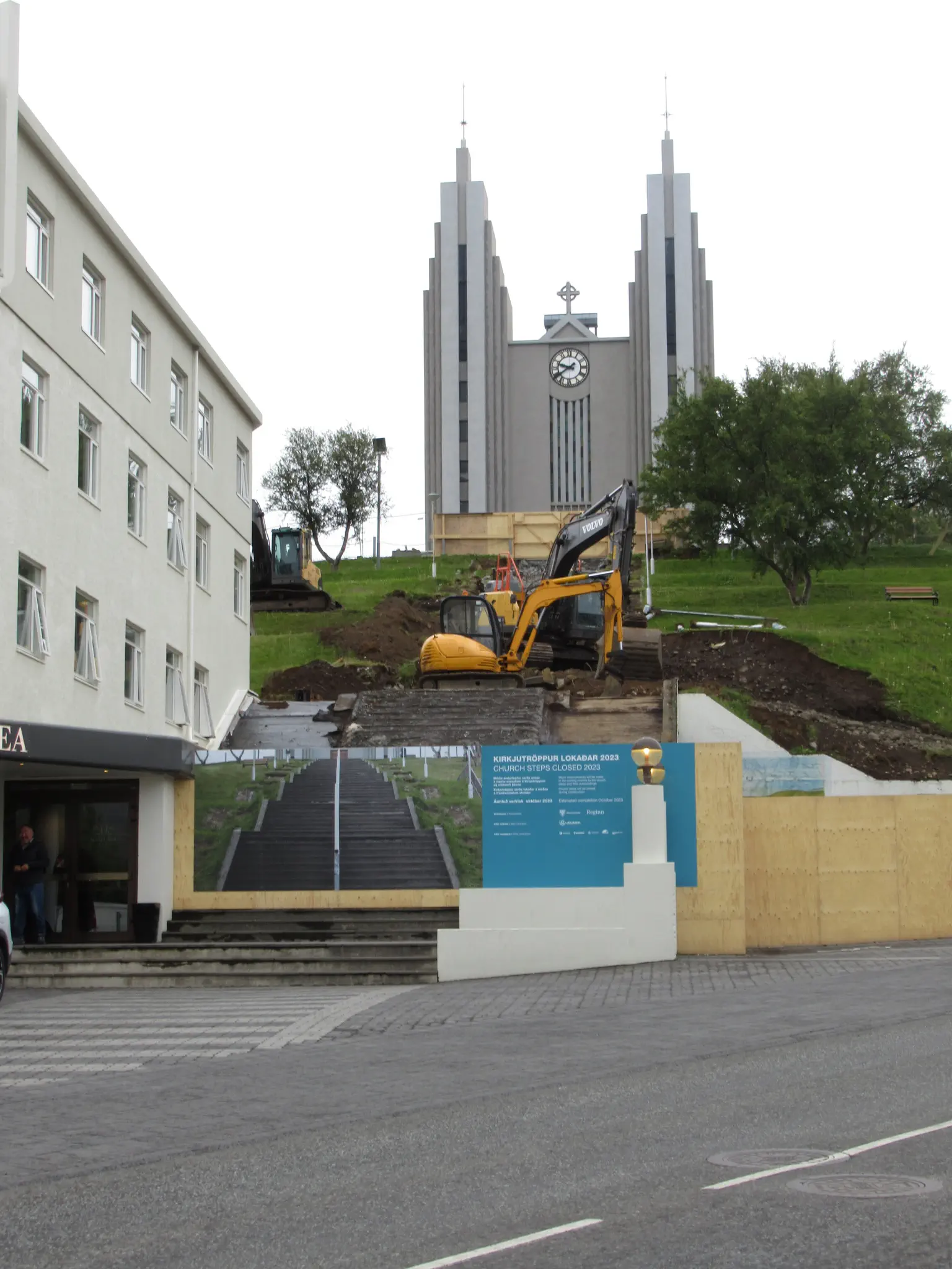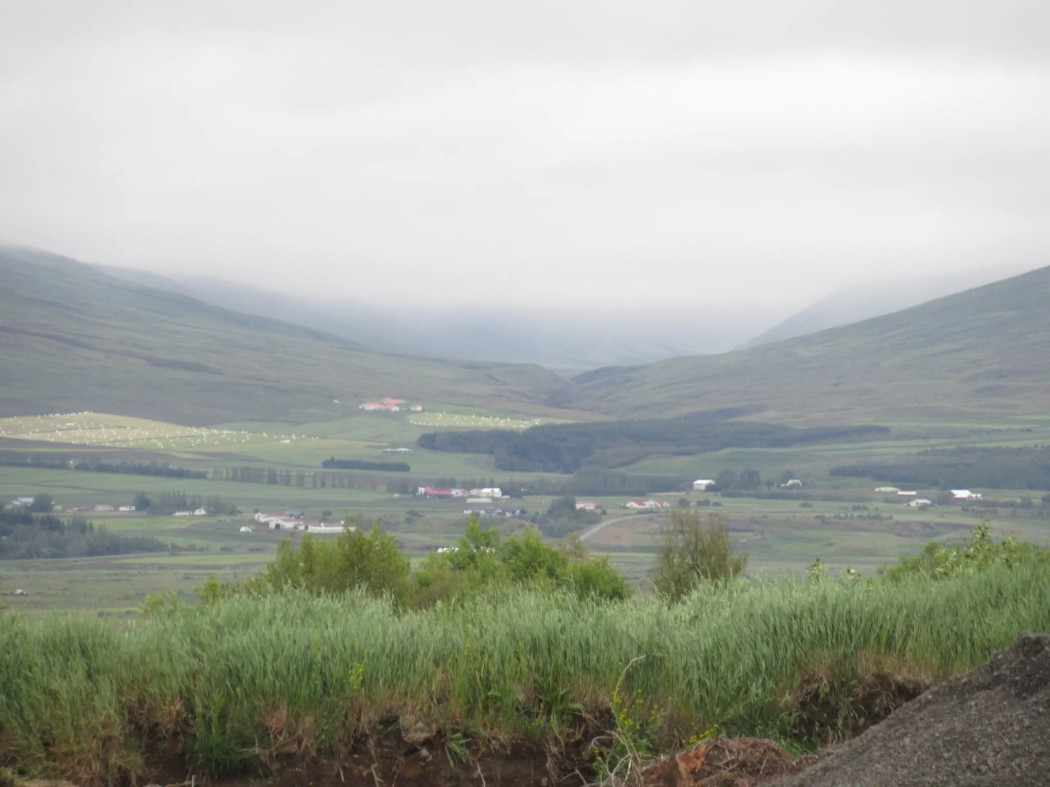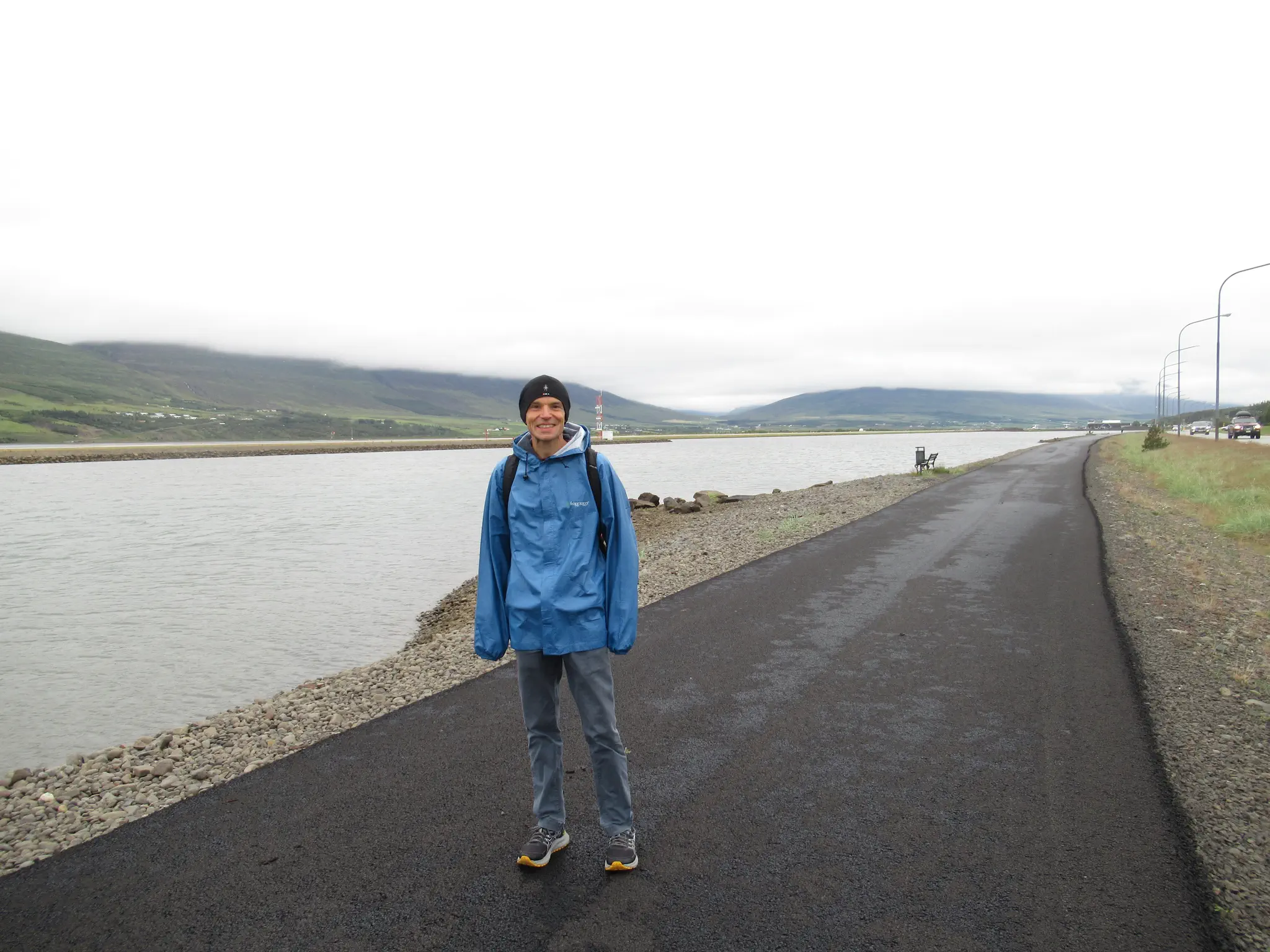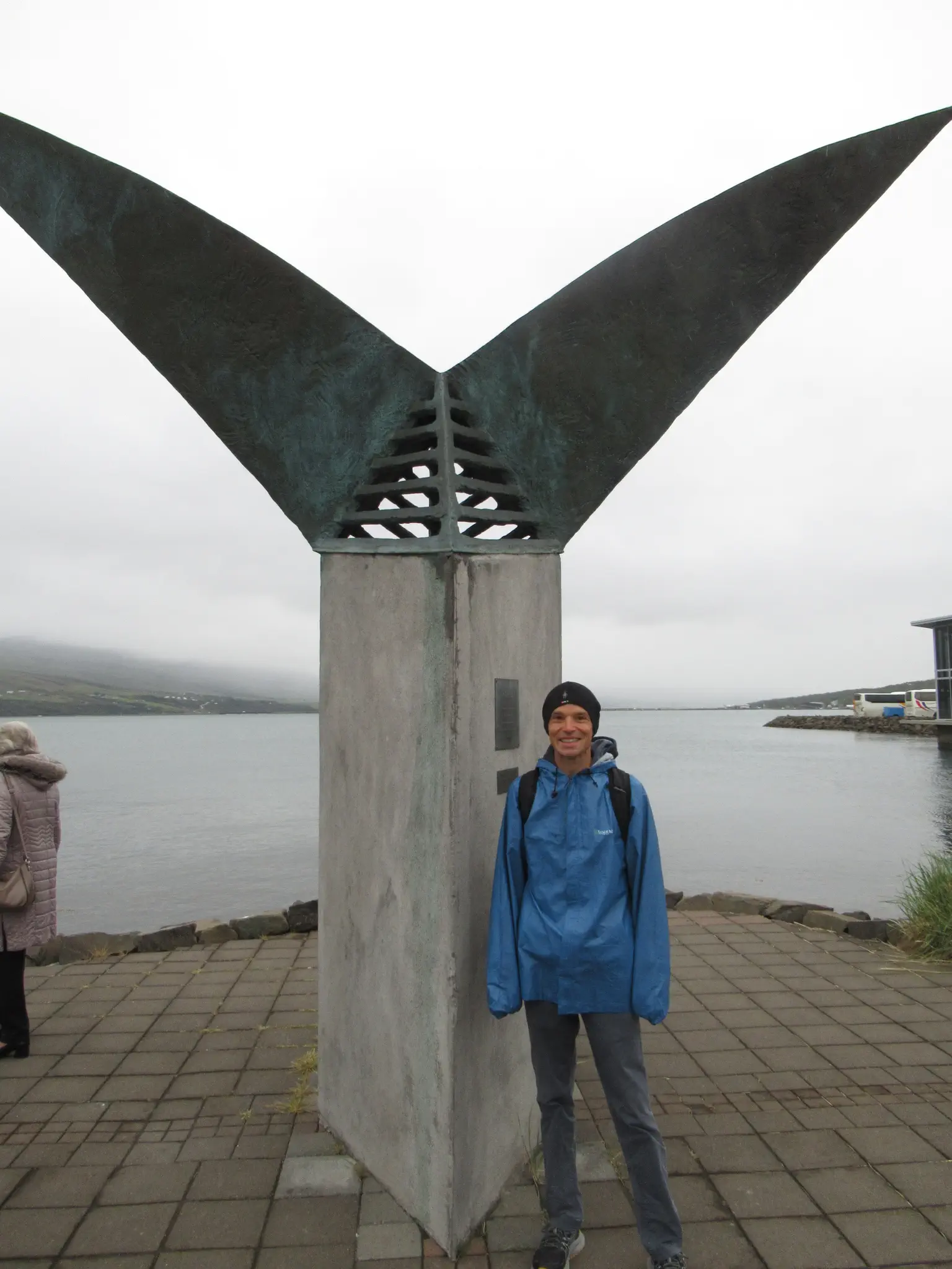 The Akureyri International Airport with runway ending in the water. Trying to spread tourist out more and handle more tourists, they built this airport to help out KEF near Reykjavik. We learned on our taxi ride, post-cruise, that KEF was a US military base and airport post-WWII until 2006. Our taxi driver pointed out some US military housing, noting that it had mostly been repainted from the army green. Then Travis made me walk up a hill.