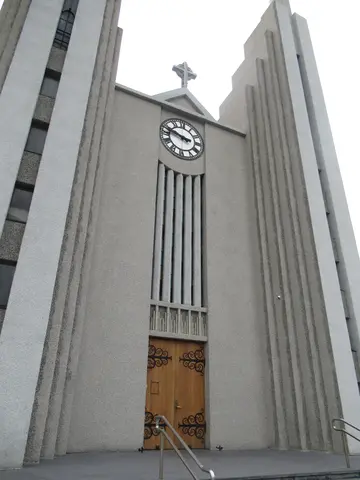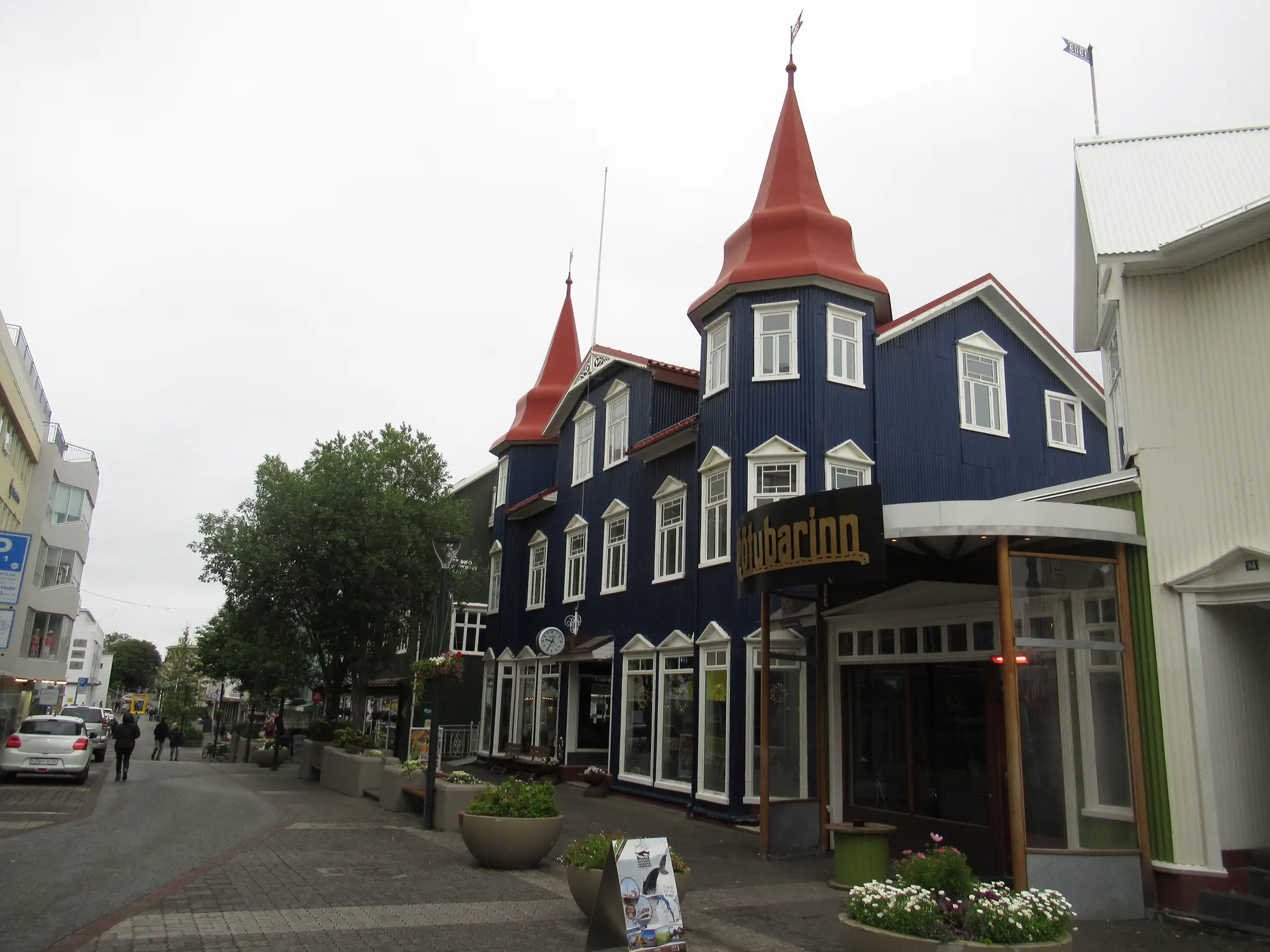 Past the whale tail, named Strandgata, was the Hof cultural center. Then I just liked this building's architecture; it was a cold weather clothes store. Then we found a church, called Akureyrarkirkja, similar to the one in Reykjavik; it was by the same architect.