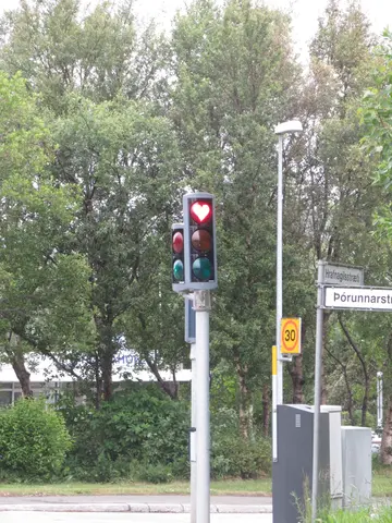 During an economic downturn, they put up lights with the red light in the shape of a heart to cheer people up.