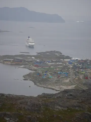 Nanortalik - GREAT - This was our only Greenland stop. Nuuk and Paamiut, as well as Djupivogur, Iceland, were cancelled ports. Greenland due to so many icebergs, which were cool to see, and Djupivogur due to too rough to tender. Here we hiked up Mt. Quassik for bay and iceberg views. We experience a neighborhood with colorful houses and then stopped at a Dutch grocery store. The crew was so sweet and giving the local kids some of the hot chocolate at the tender port. This was bad though -- the tender line took an hour, in the rain! They only had one dock, so slow to offload everyone and then reload. The tender boats piled up, waiting their turn to offload.