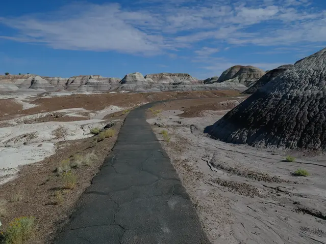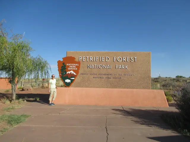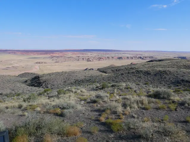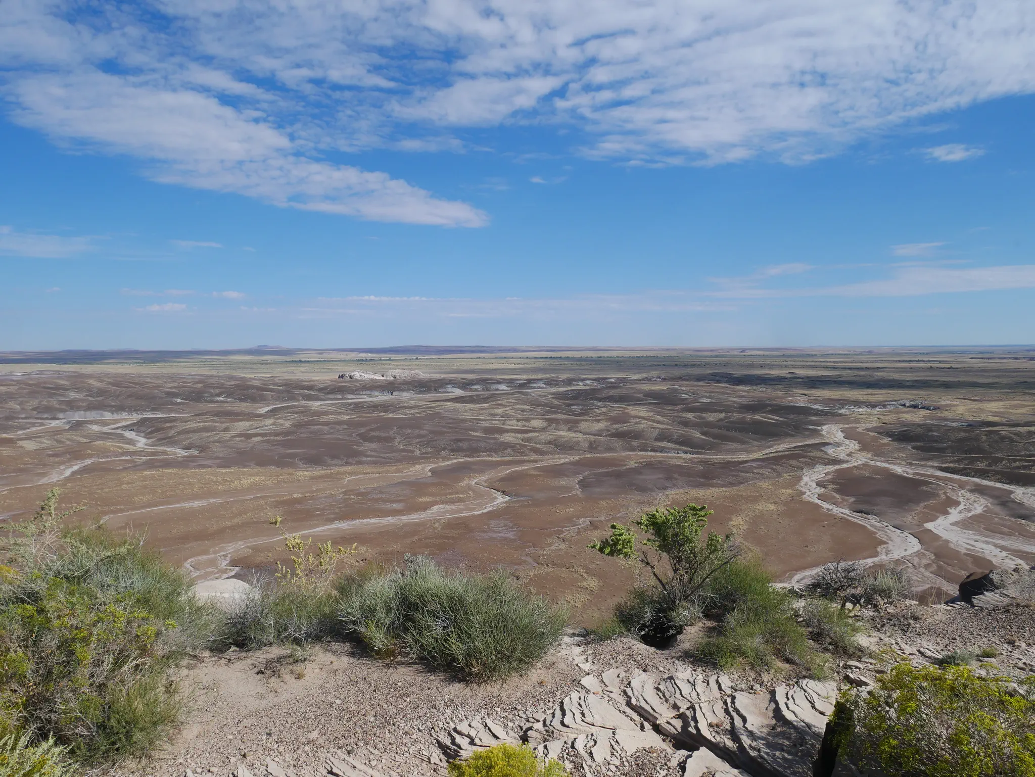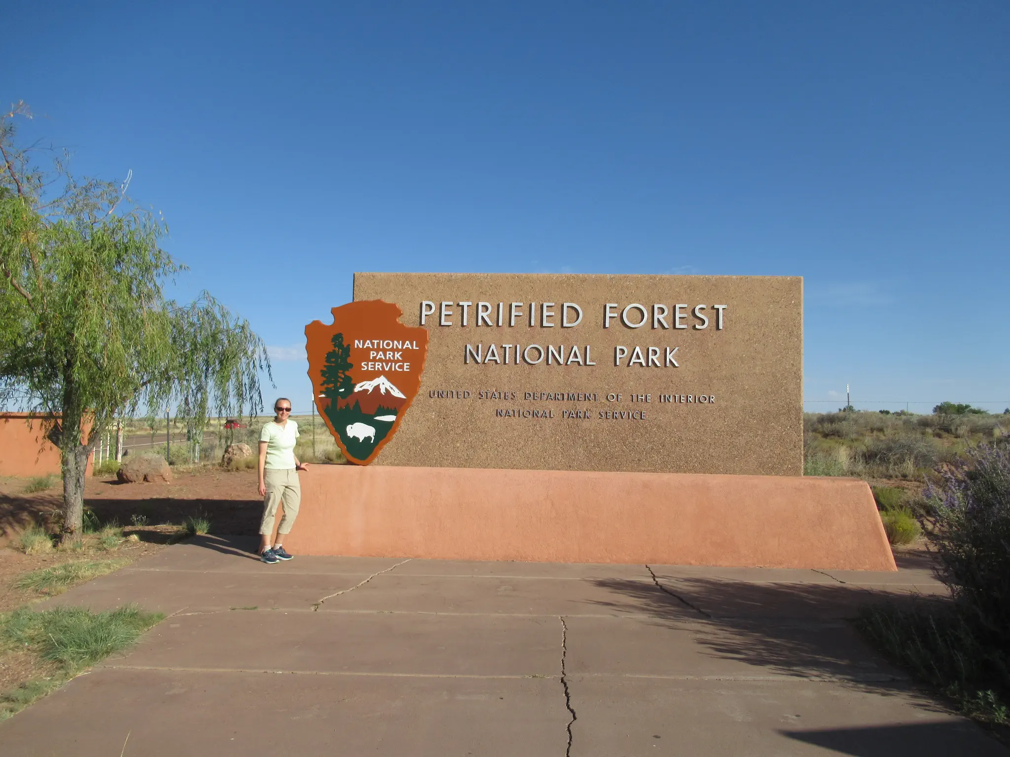 The Petrified Forest's did not open unto 8am, with a closed gate before. I have seen that National Parks normally allow to enter before opening, but we could not get into 8am here. It was an hour earlier here than where we stayed, so an early start would have been good to get more time at the park. From the east, going to the north entrance from I-40 is the only reasonable option. We drove and visited north to south and exited at the south side. I still manage to mess up the timing, so Travis found us another park to hike in first. I was so confused on the time the full trip -- we left CDT/GMT-5 to NM MDT/GMT-6 to AZ, which does not observe daylight savings time (DST), so MST/GMT-7 or California time now. The Navajo Nation does observe DST, so on MDT too. We booked Antelope Canyon through them, but they operate the tours on AZ non-DST time to not confuse people, which thoroughly confused me.