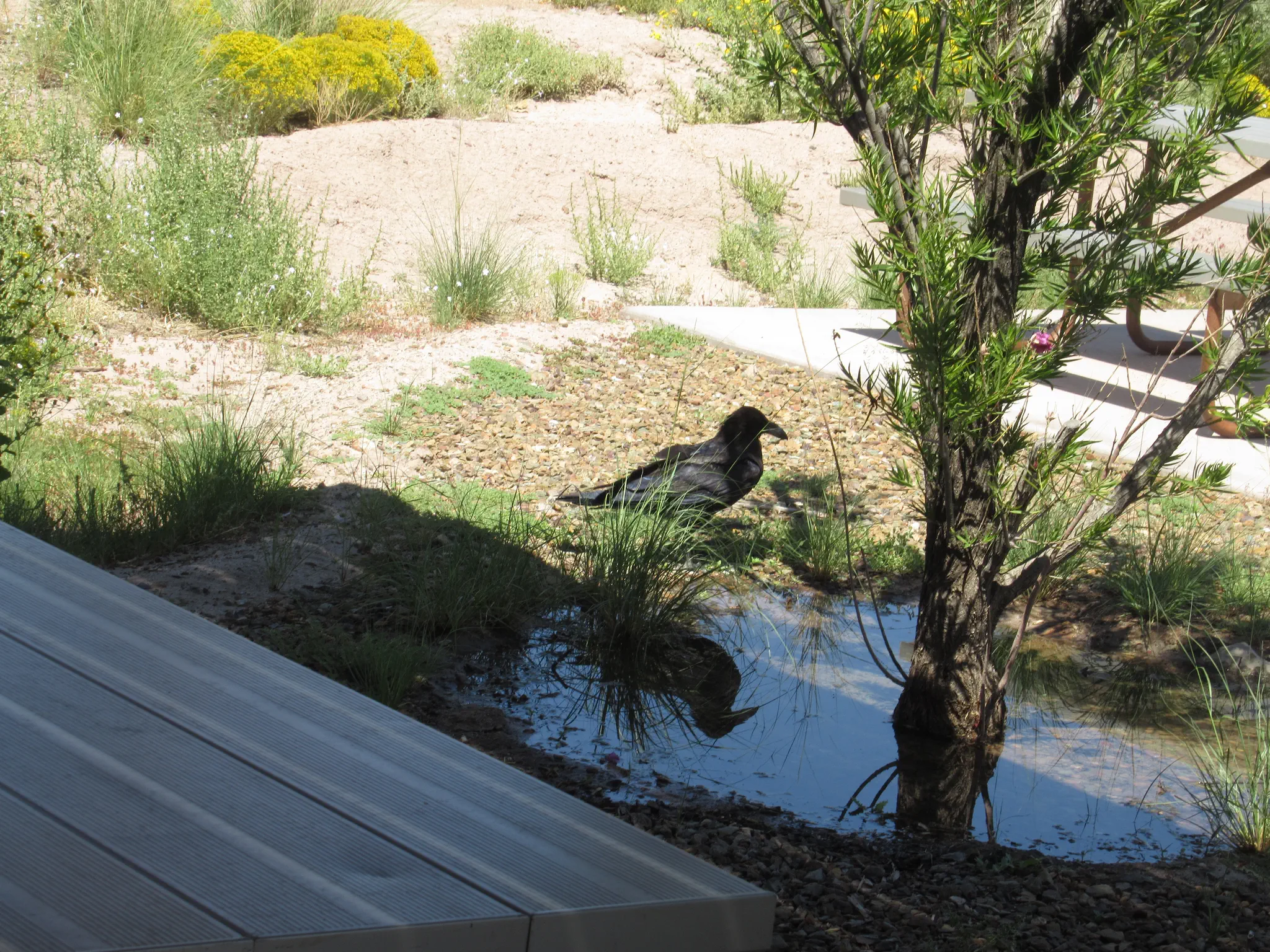 Before leaving, we had our picnic lunch in a picnic area in front of the visitor center. Since this tree was probably getting more than its fair share of water, a raven came for a drink. We were warned that we would see a lot at the Grand Canyon and needed to keep our food from them. Here we were warned of bees, which we also avoided. There was a bottle filling station, so we refilled before hitting the road again.