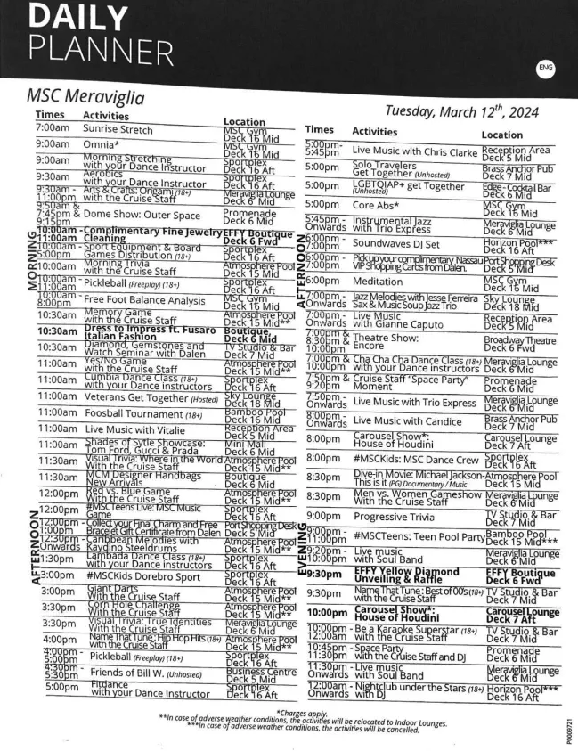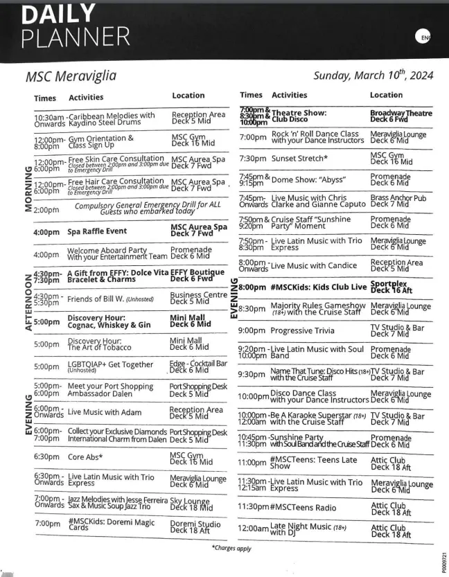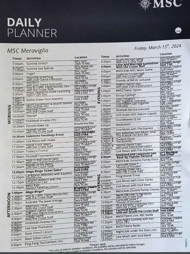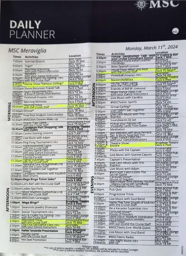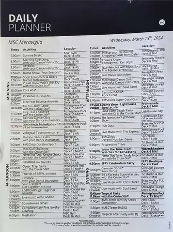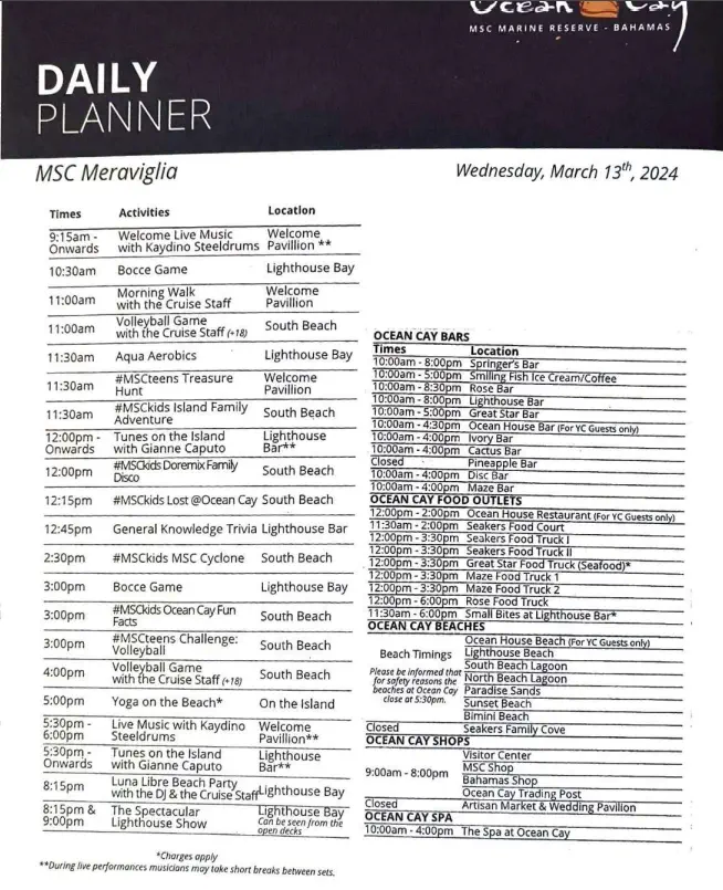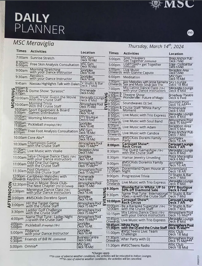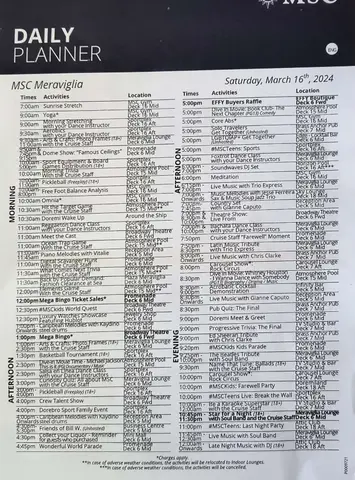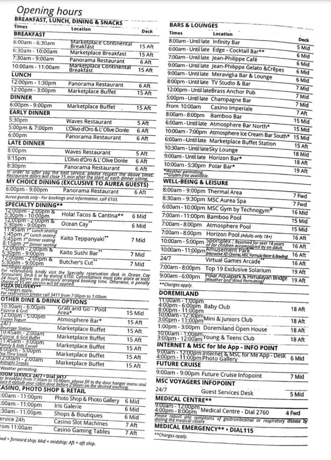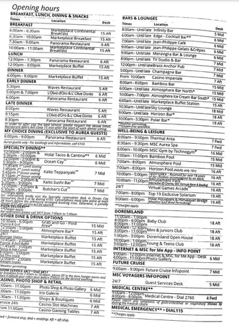 This was useful because the app just had the hours when clicking into each venue. This is from a Sea Day.