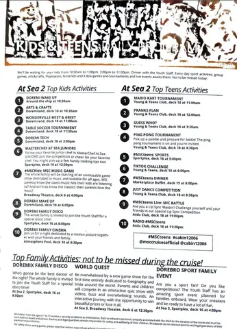 Kid's activities; I only did one day for an example since our kids are too big. It is a Sea Day.