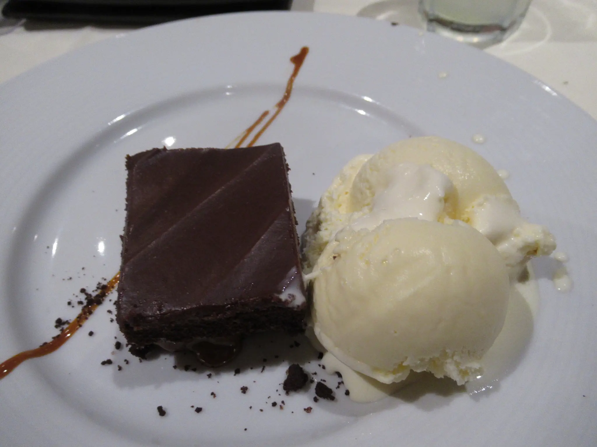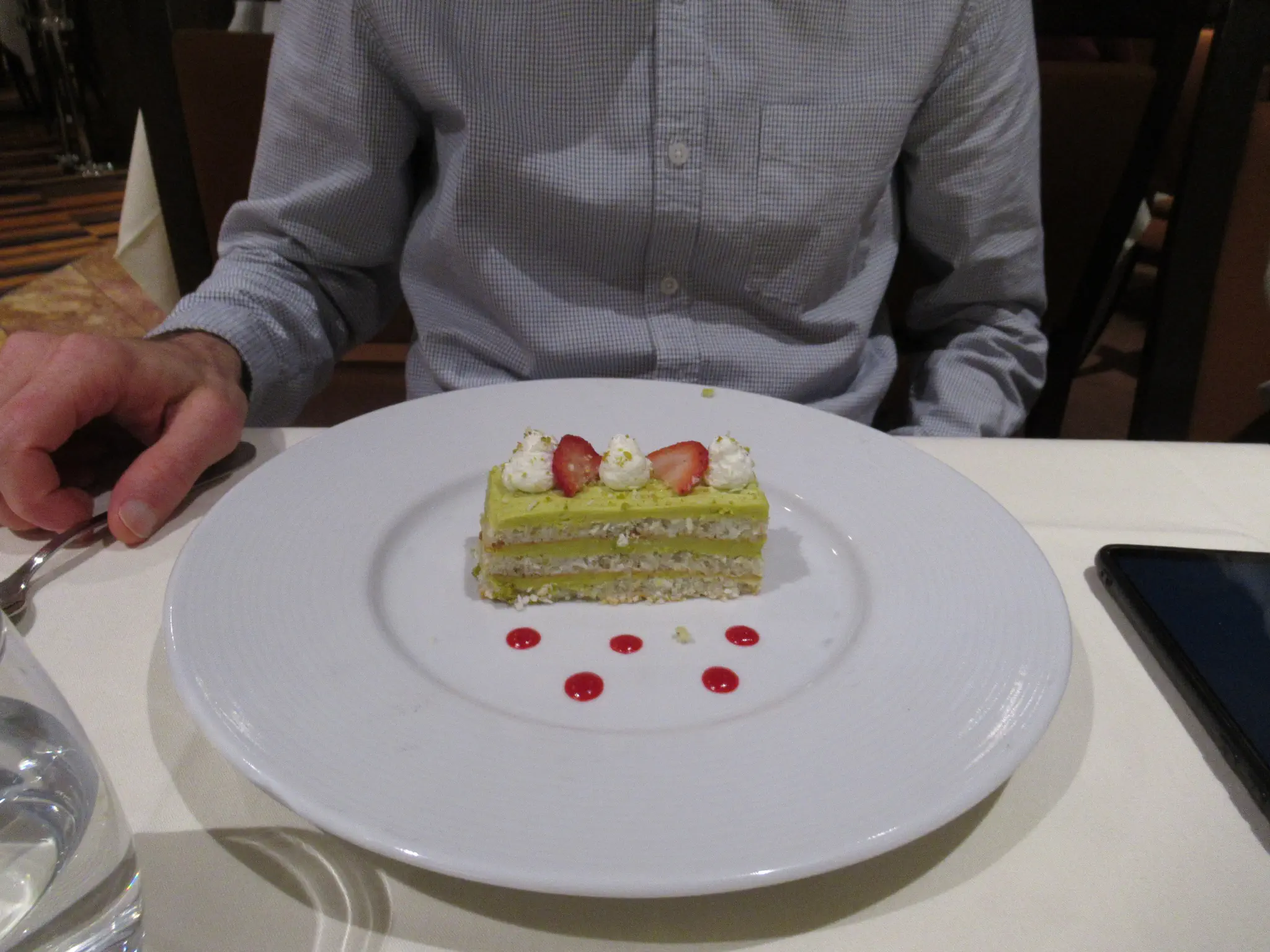 I did get dessert pictures. Both kids got the warm apple crumble and enjoyed it very much. Travis had the Coconut pistachio dacquoise, and I had Grandma's chocolate cake that Ramon asked/recommended a la mode (a good choice). Everyone liked their dessert.