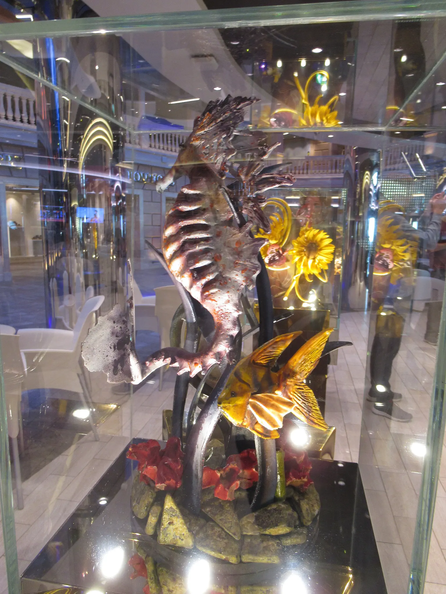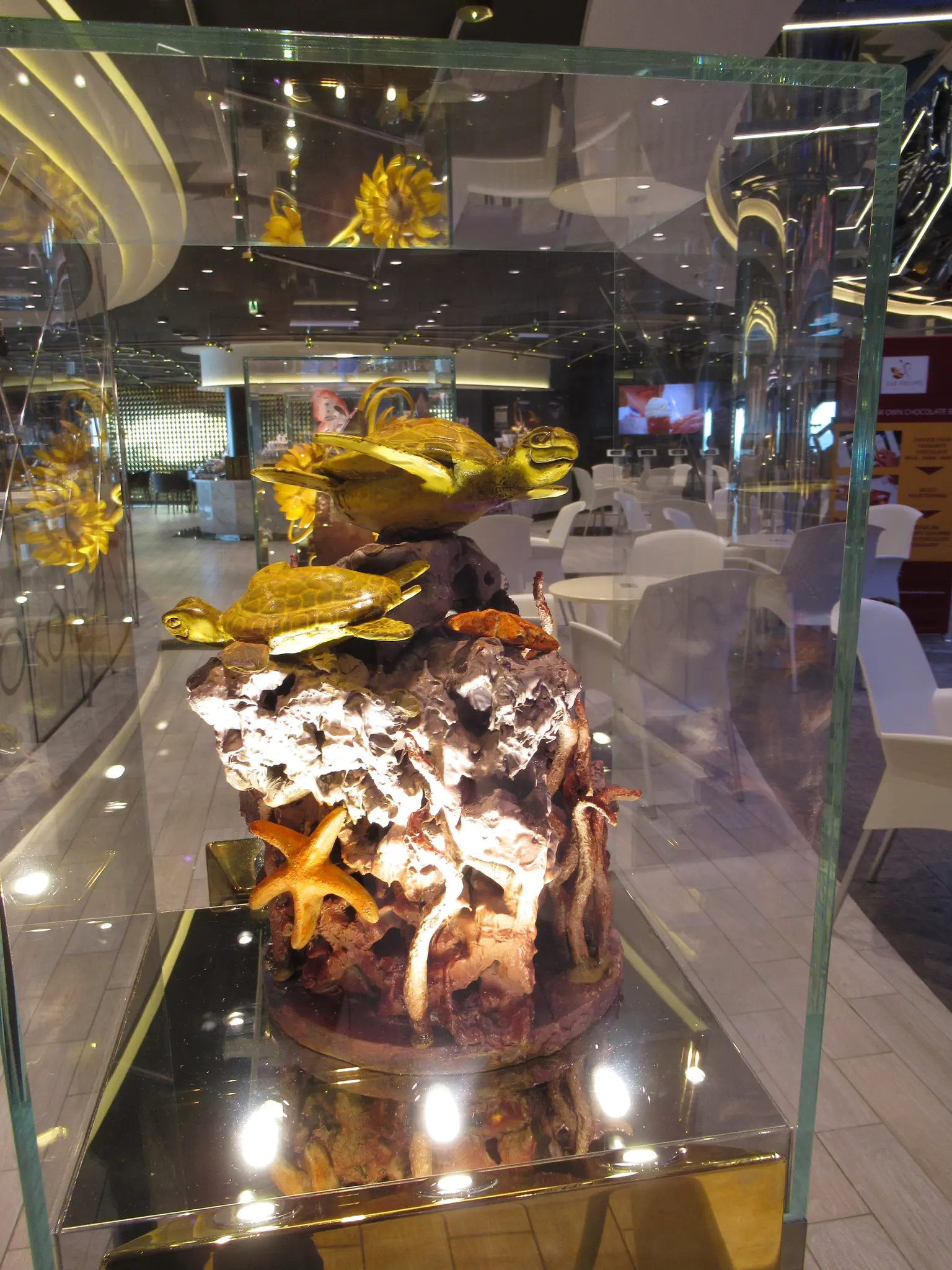 After dinner, we checked out the chocolate store. They were starting an owl; he was completed and displayed at the end of the cruise. There were several other cool chocolate statues to see.