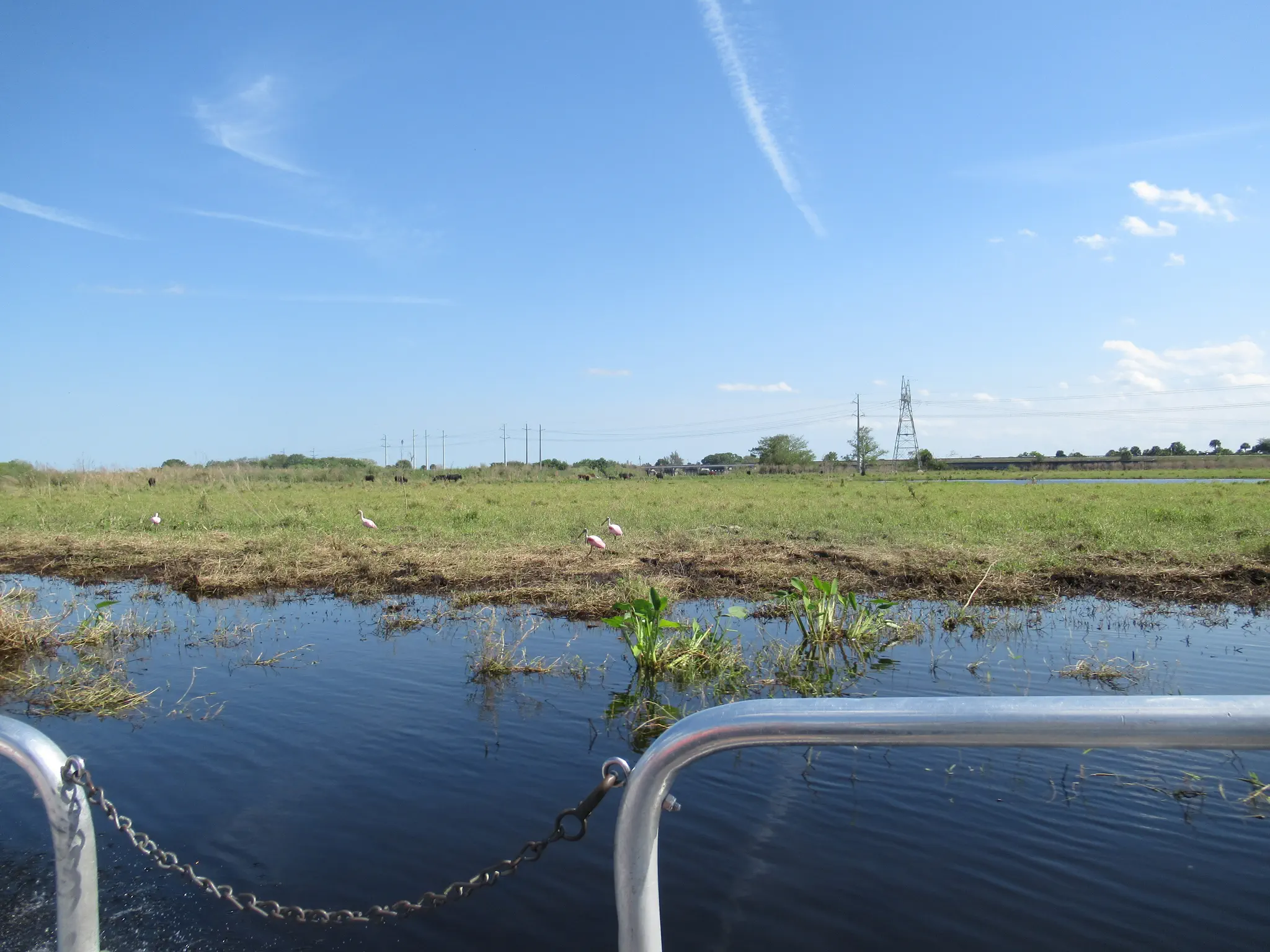 We drove to Twister Airboat Rides that did not take reservations for the shorter airboat ride, 30 minute ride. We paid there. I had printed a $2 off per person coupon, but also grabbed one from the car rental place while perusing the coupons and waiting for the slow guy in front of us. Paying cash would have been cheaper too, but we did not have enough. They had a bar and restroom, but no displays (I wondered if they would). After paying, I realized that I should have asked the time of the tour before paying. She said 10 to 15 minutes, which surprised me. It was 10 to 15 minutes instead until the next group, that was not us, started. Before they started, he said that he needed to get more gas, which proved to be a slow process. Two were operating, so it did not take too much longer before it was our turn. We were also slow getting ready; leaving some stuff in the car, back to grab a tip to give, back to grab the paper with our group number, and sunscreening.