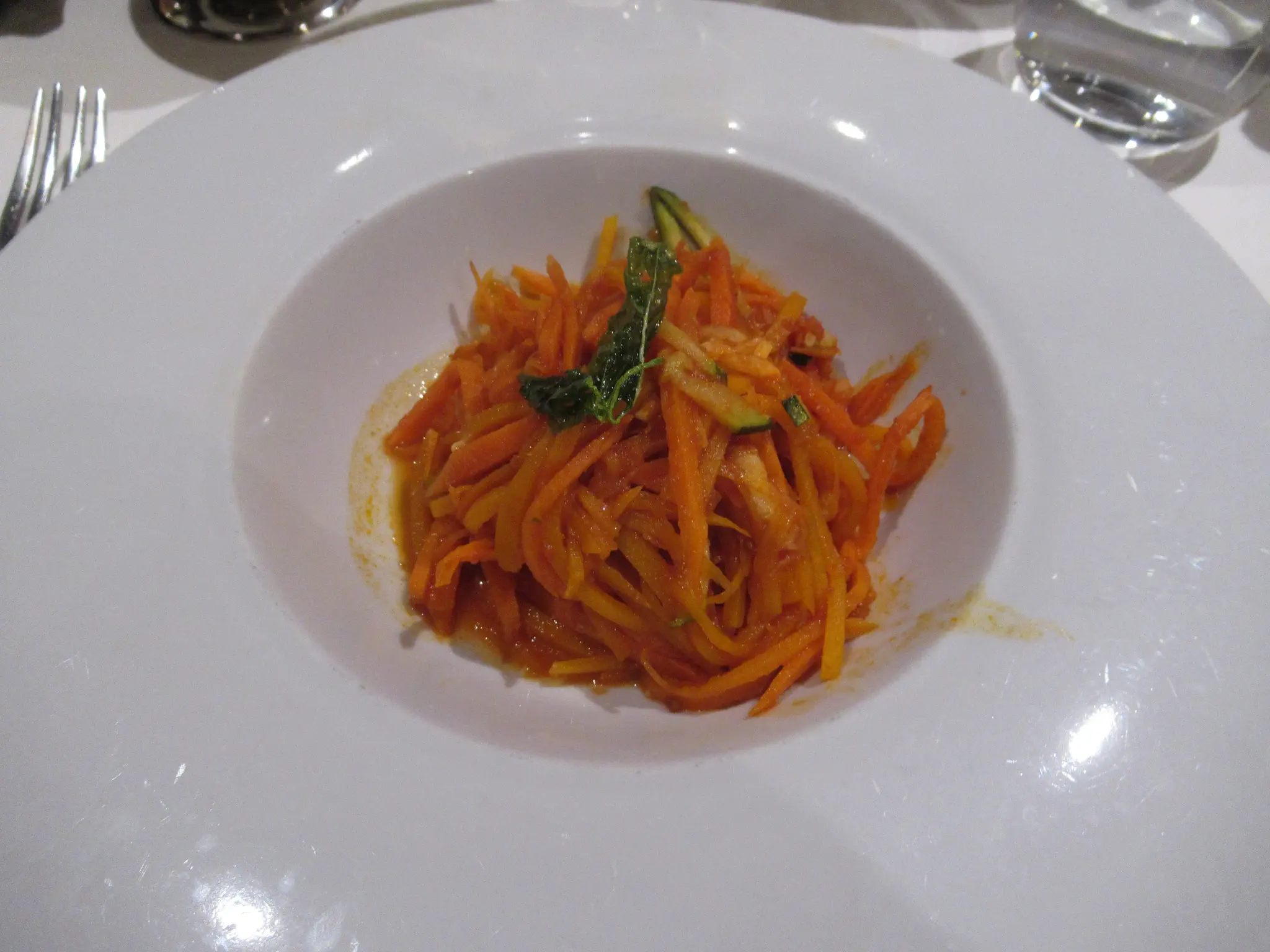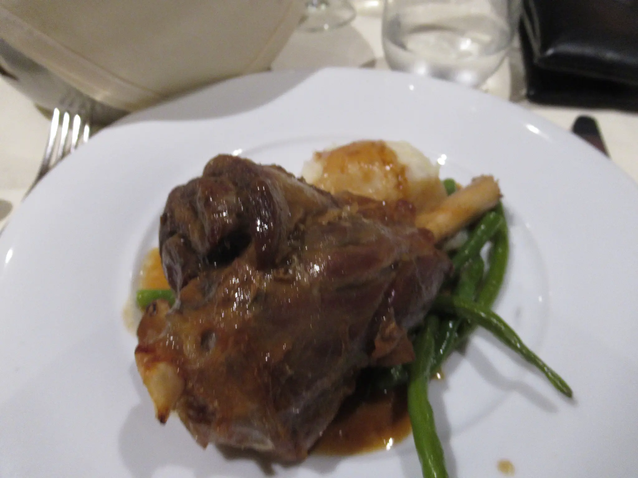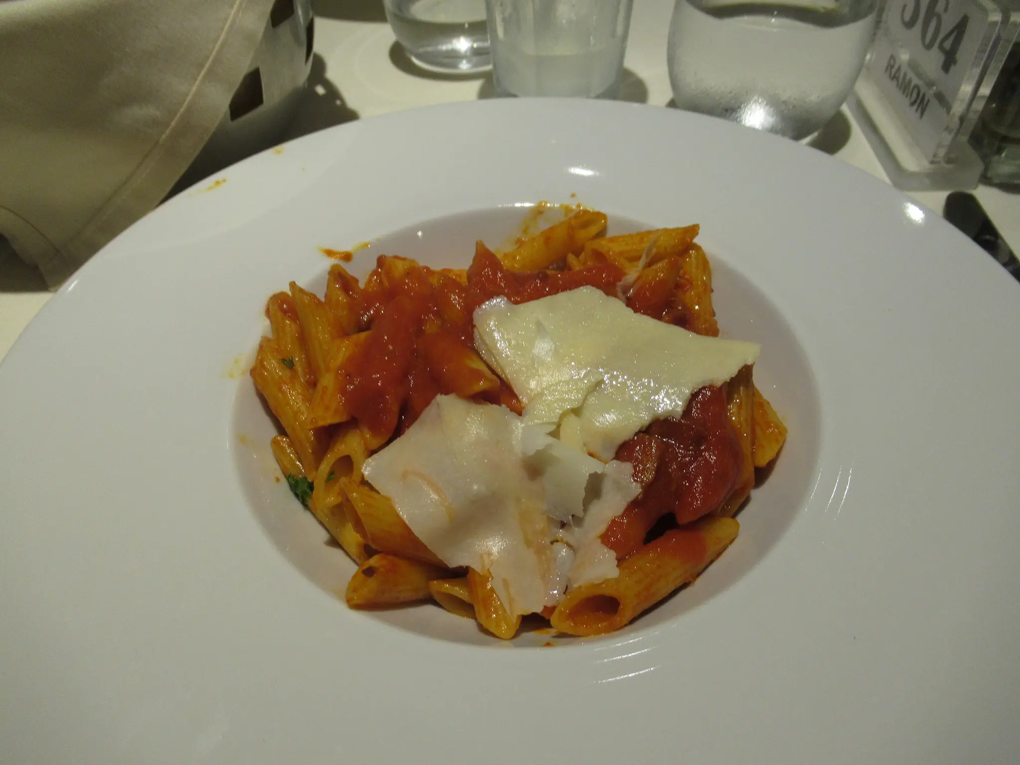 For mains, Owen and I got the lamb; it was very good. Travis's wild barramundi filet. Joel got the penne all'amatriciana, which was not good. We shared some lamb with him.