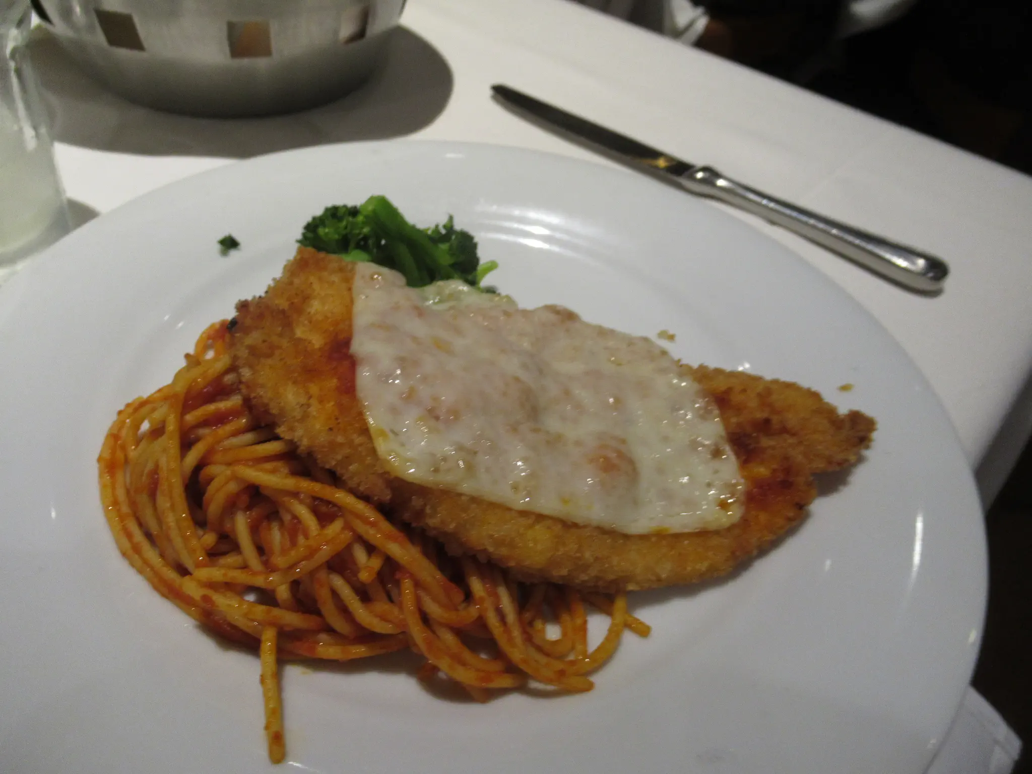 Tonight was Italian night. Owen and I got the Sicilian-style arancini that were very good. Joel and Travis the caprese salad. Joel and I got the bistecca, which was not good. Owen the chicken parmesan that I'm not sure that he was very impressed with, but I thought was good. Lastly, Travis's voodles vegetarian dish that was good, as far as vegetable go :).