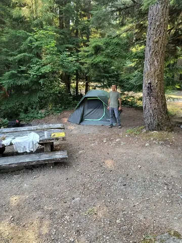 We then went to setup camp. We were in Colonial Creek North Campground. This park had the most campground options. I picked based on those without vault toilets. The South Campground version of Colonial Creek was much bigger. We just went in and found our site, and the South had a booth to check-in. We went to a Ranger talk in the amphitheater in the South and found that it was way in the back. This is how we determined that it was bigger. It was also across Hwy 20. We had not allowed enough time to walk.