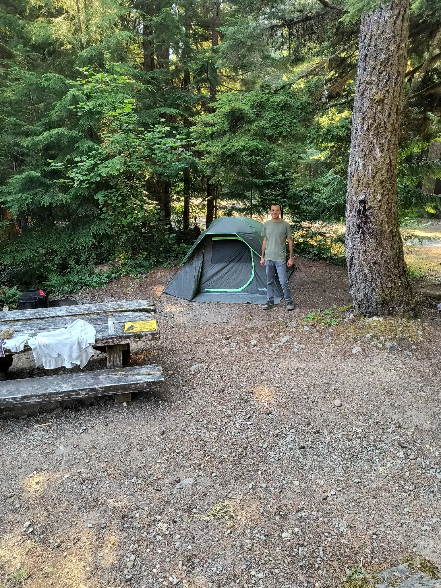 We had some pretty foxglove at our campsite. Ours was site 24. It looked close to the bathroom when I booked, and there was a trail. However, the trail was quite a climb up and down, so tough in flip flops. Though I went on the road in the dark because I was afraid of bears in the woods. In the morning, I had some tough in flip flops and up and down the hill. This was the only National Park campground on this trip with spigots around the campground (others had filling stations near the bathroom); however, the one closest to us did not have a handle.