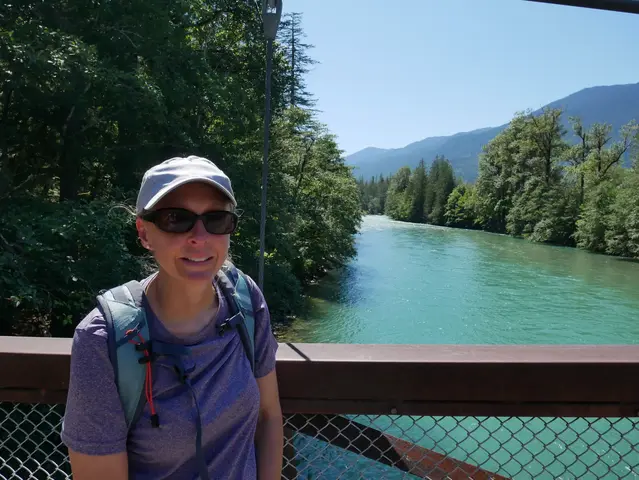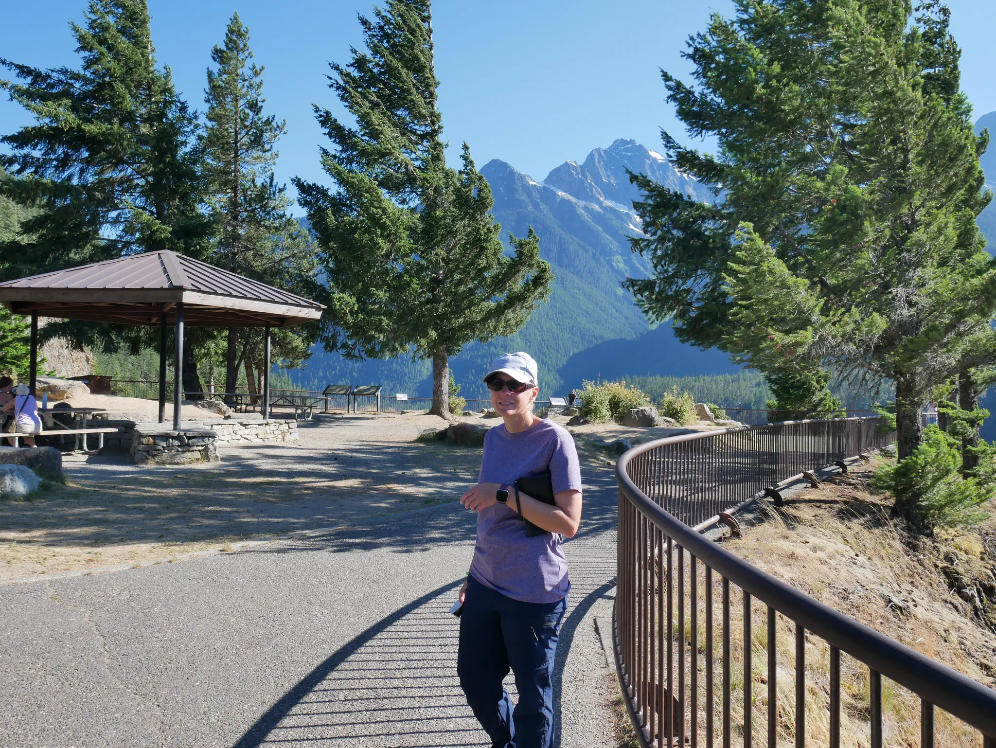 We next arrived at the North Cascade Visitor Center and had a picnic on some tables in the back and got the map and advice/trail paper on hiking the Maple Pass Loop trail for tomorrow. This trail is operated by the US Forest Service instead, so this is not really really their domain. But, they had a trail guide with hikes, MP (Milepost) numbers, and distances. The Ranger also confirmed that our Annual Pass, displayed on the dashboard, would work for the hike and parking in the US Forest Service. The trailhead also had a fee envelop where you can pay there. We also talked to someone who bought the $5 pass at the Visitor Center.