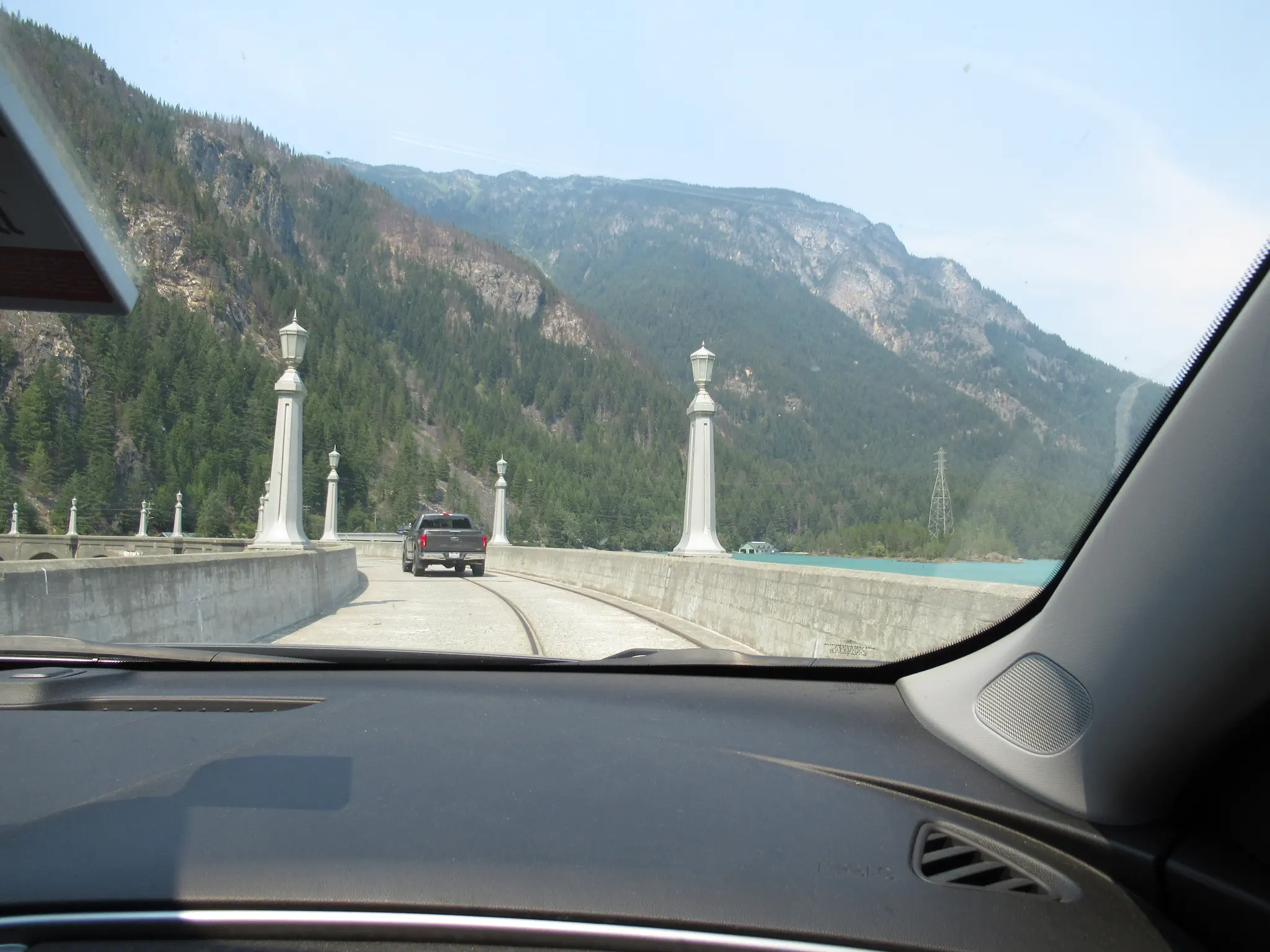 After finishing in Winthrop, we went down Old Diablo Rd (at MP 127, not MP 128 like the park brochure said). This went over Diablo Dam as what looked like one lane at a time, though I saw two cars manage to pass. Others looked ahead and waited to keep it to one at a time.